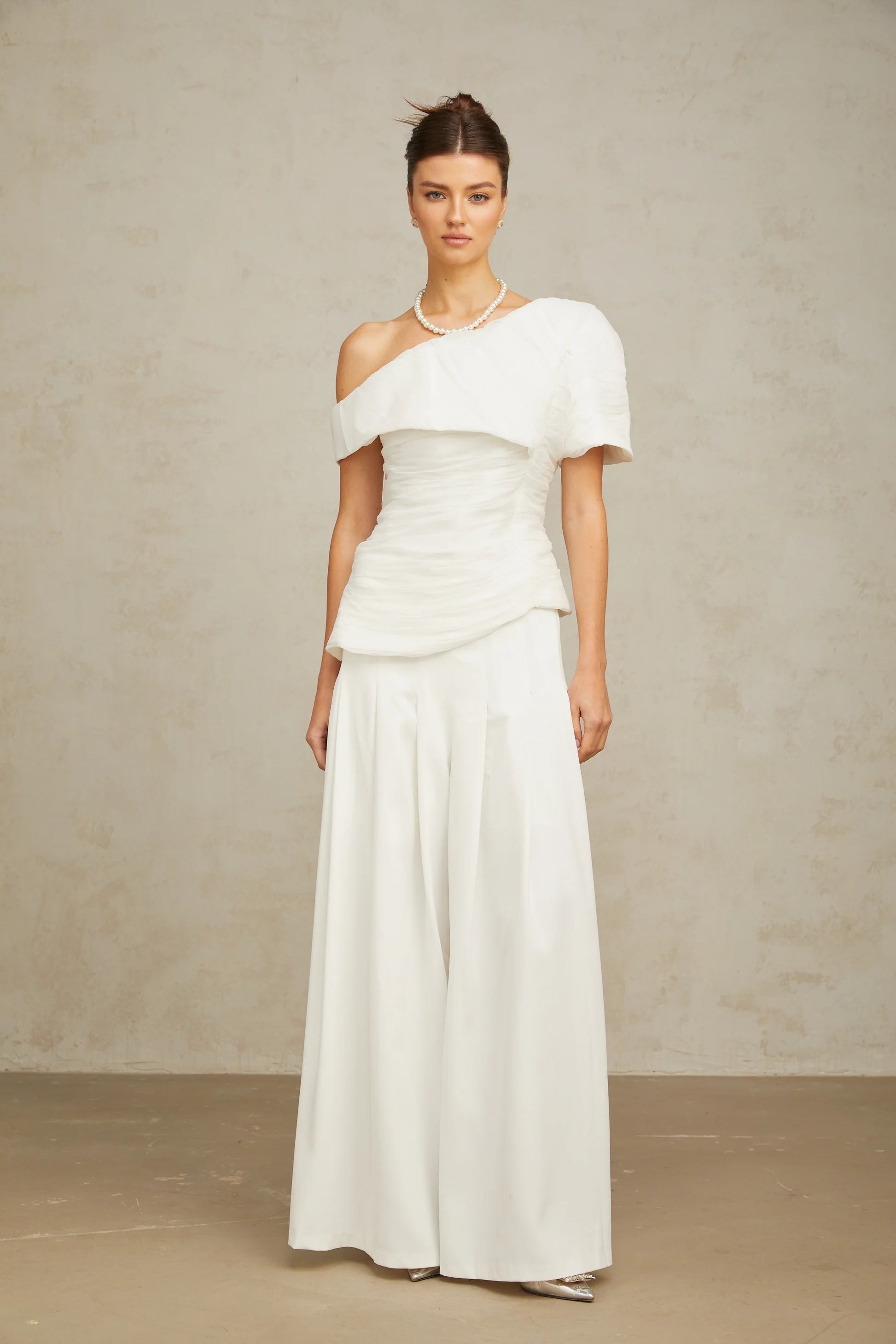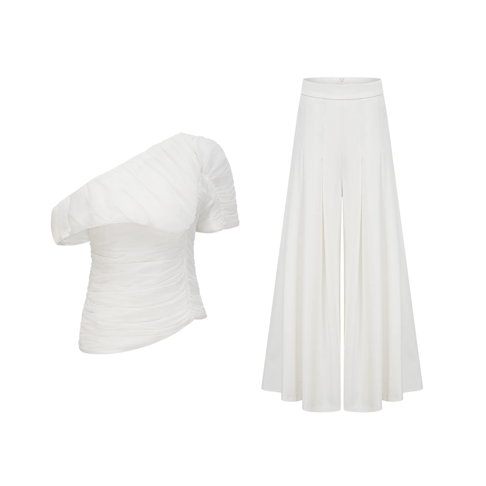 Adèle creased top & trousers matching set in White