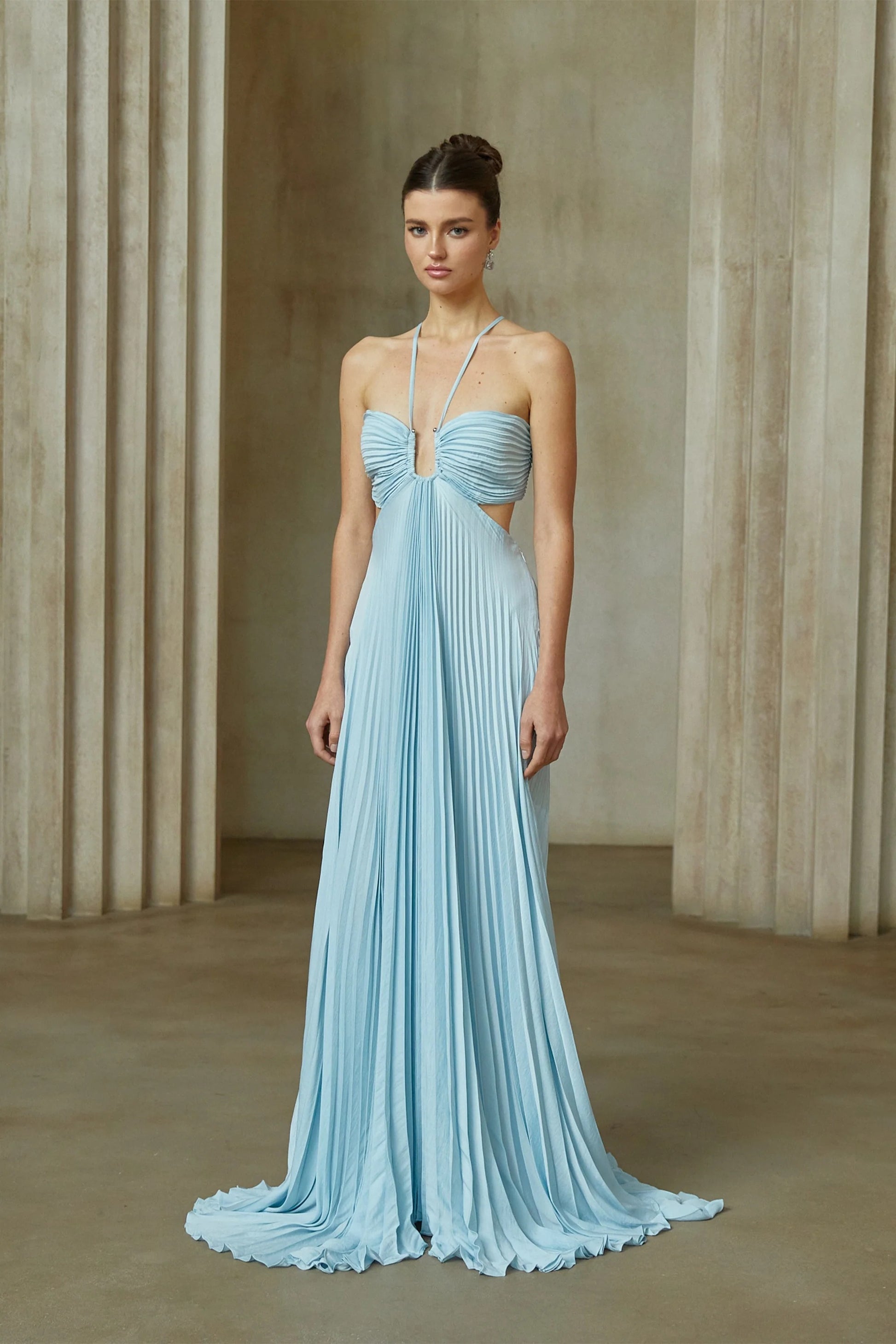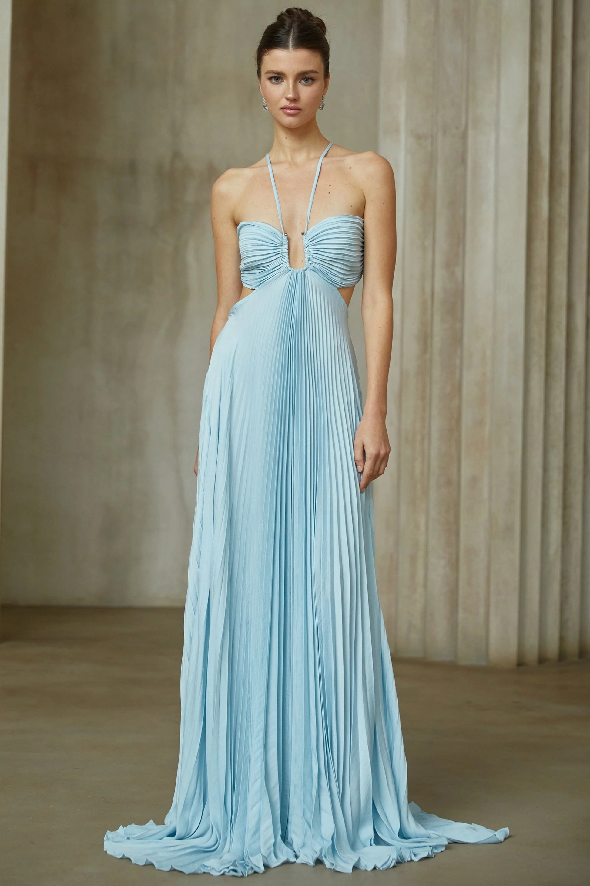 Andréa Blue Pleated Maxi Dress with Cutout Detail