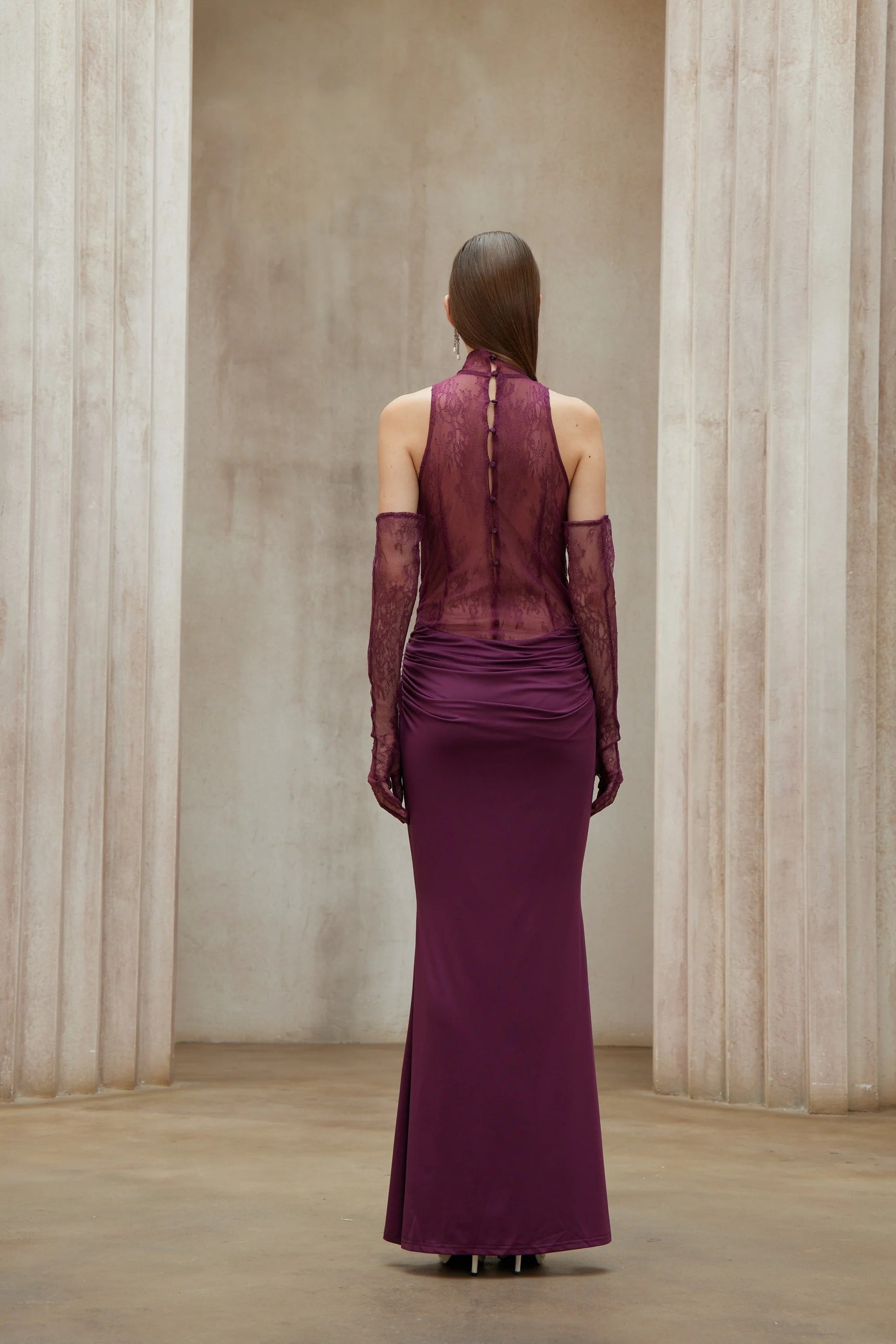 Borbala Magenta Lace Bodice Ruched Maxi Dress