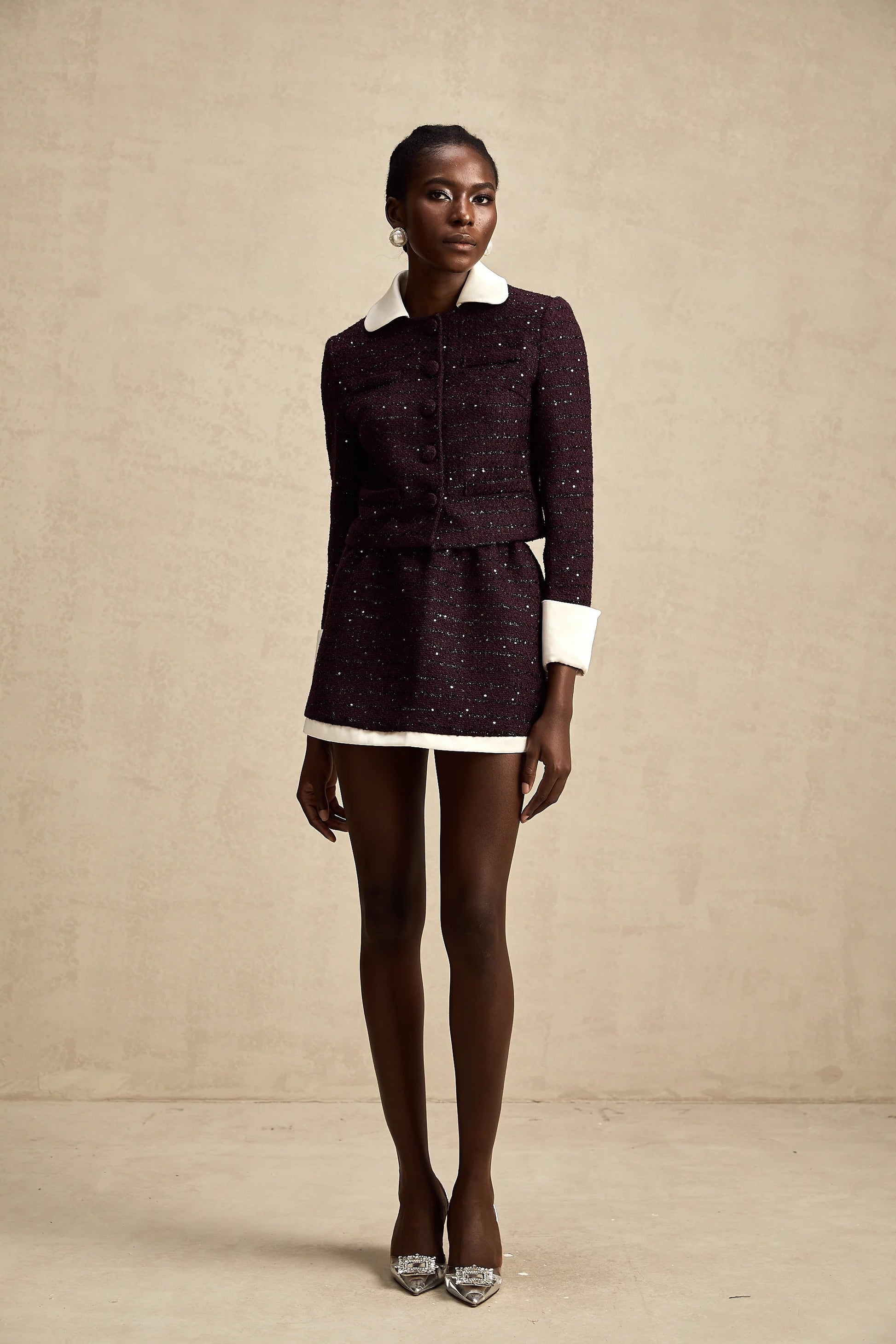 Brigitte Purple Sequined Tweed Jacket & Skirt Matching Set