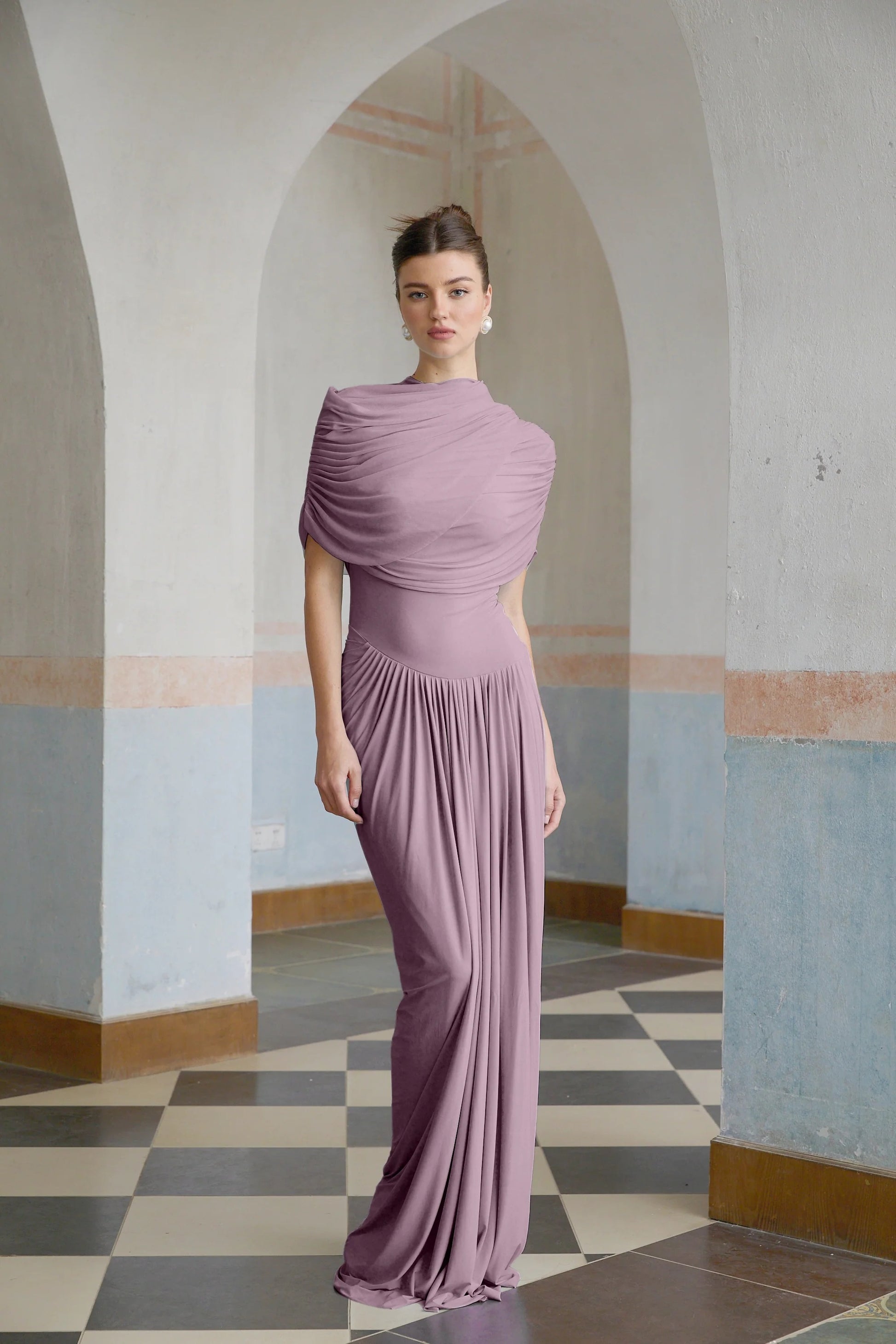 Catherine asymmetrical pleated maxi dress in Purple