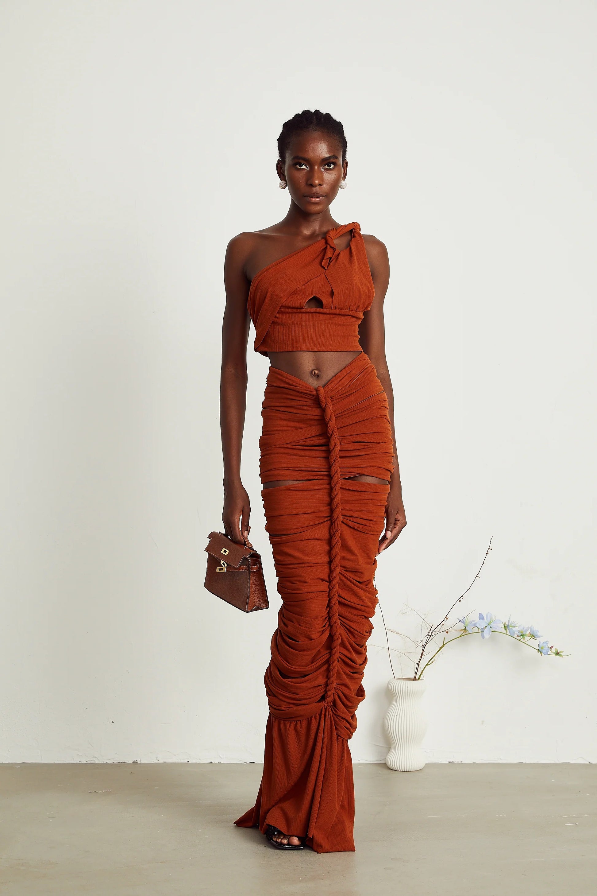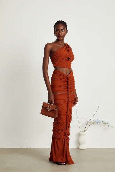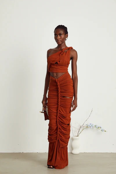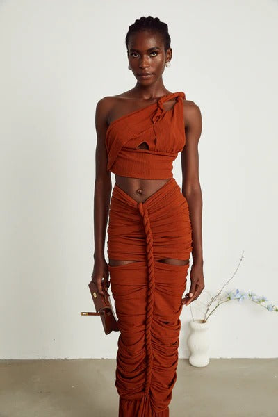 Célestine brown twisted cut-out top & skirt matching set