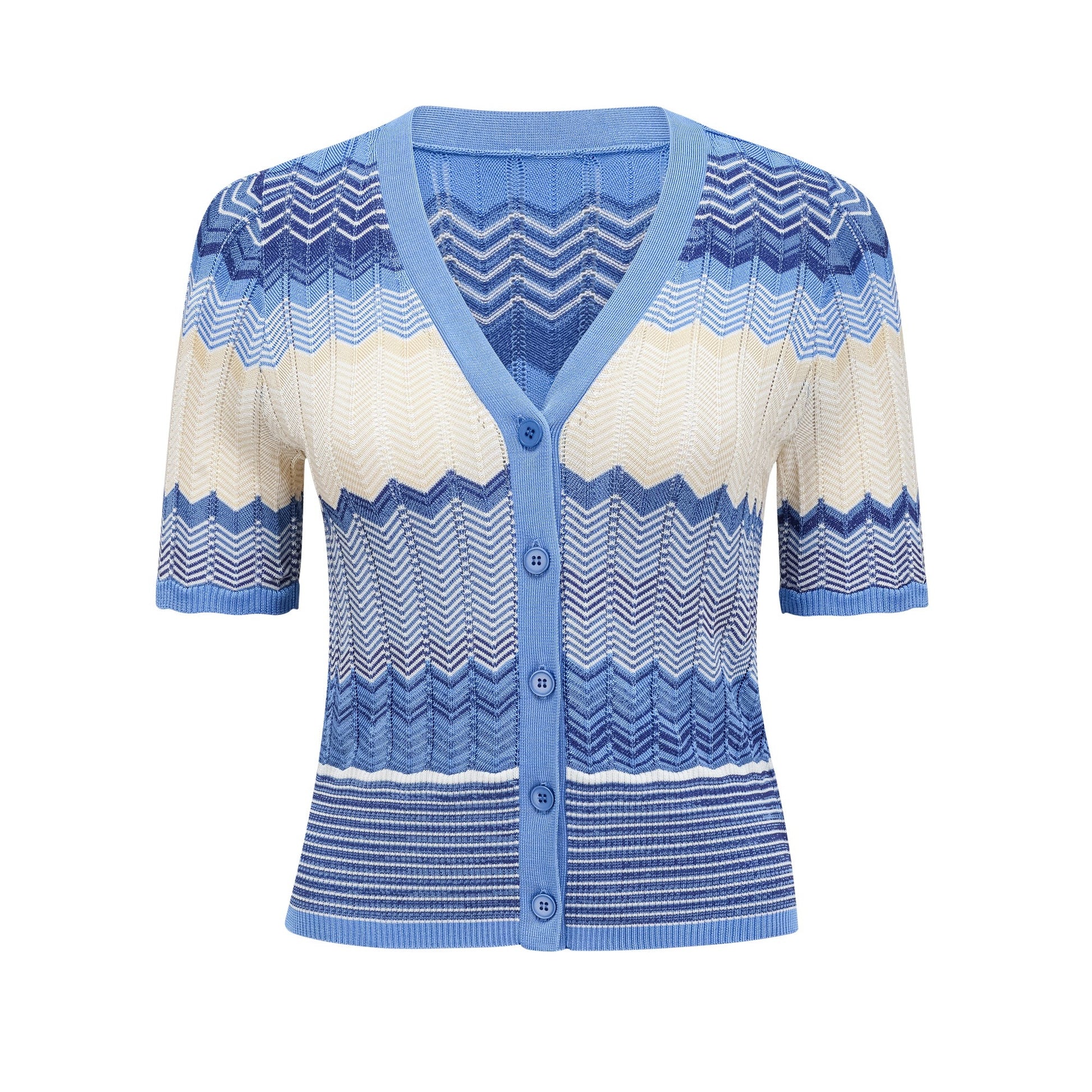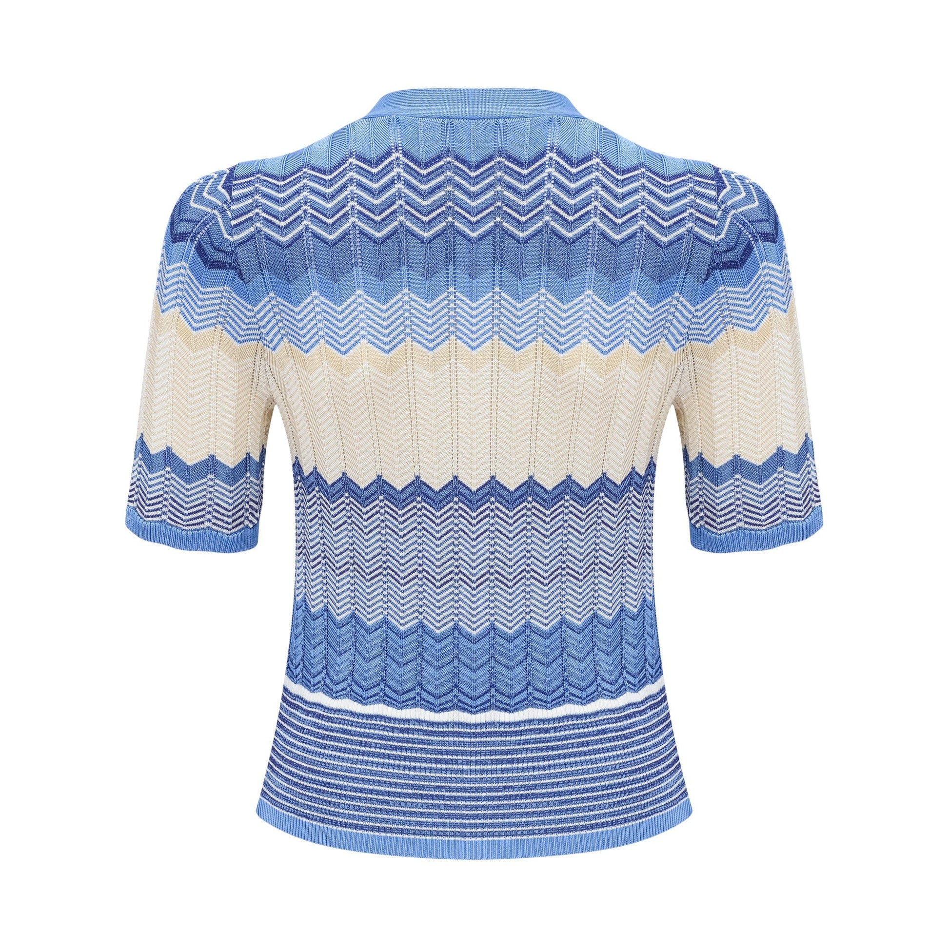 Daniela Blue Zigzag-Design Knit Top & Skirt Matching Set