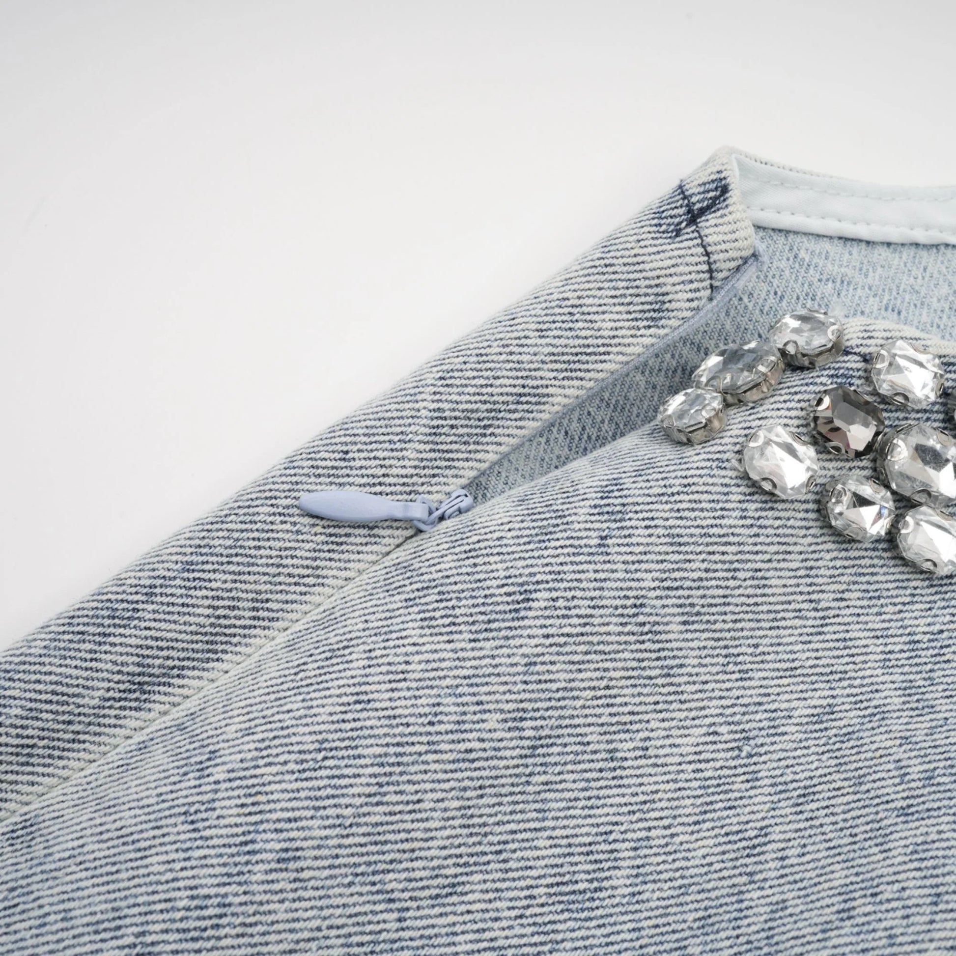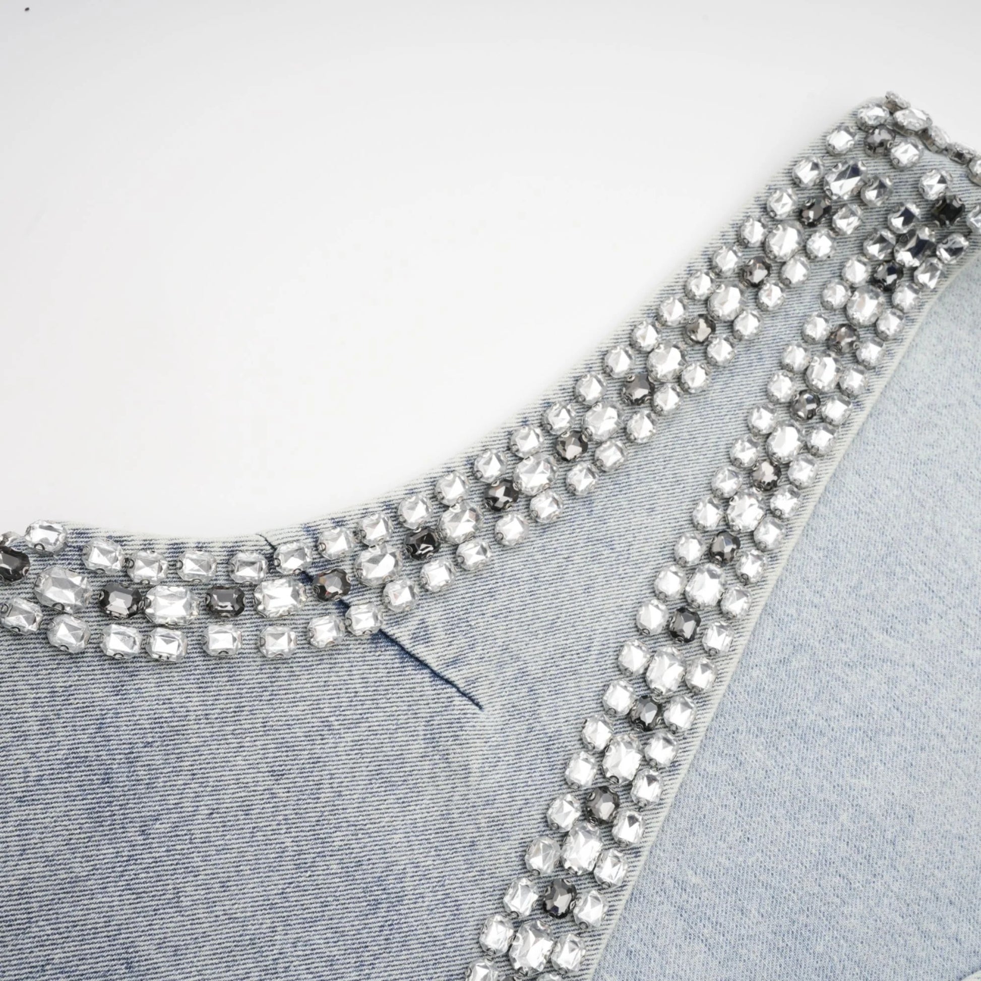 Daphne Blue Crystal Sleeveless Denim Mini Dress