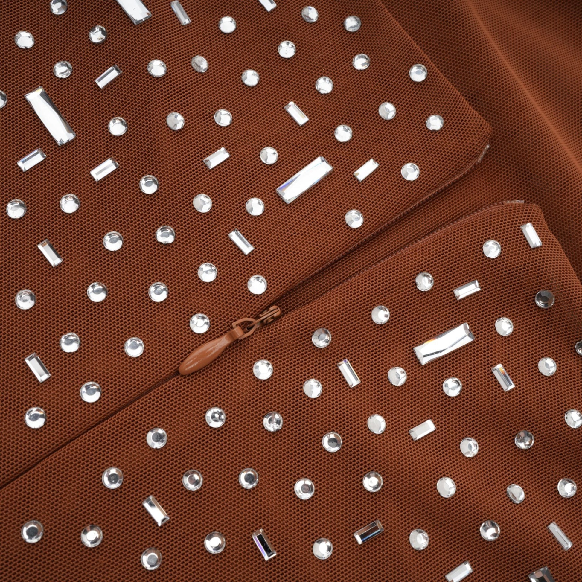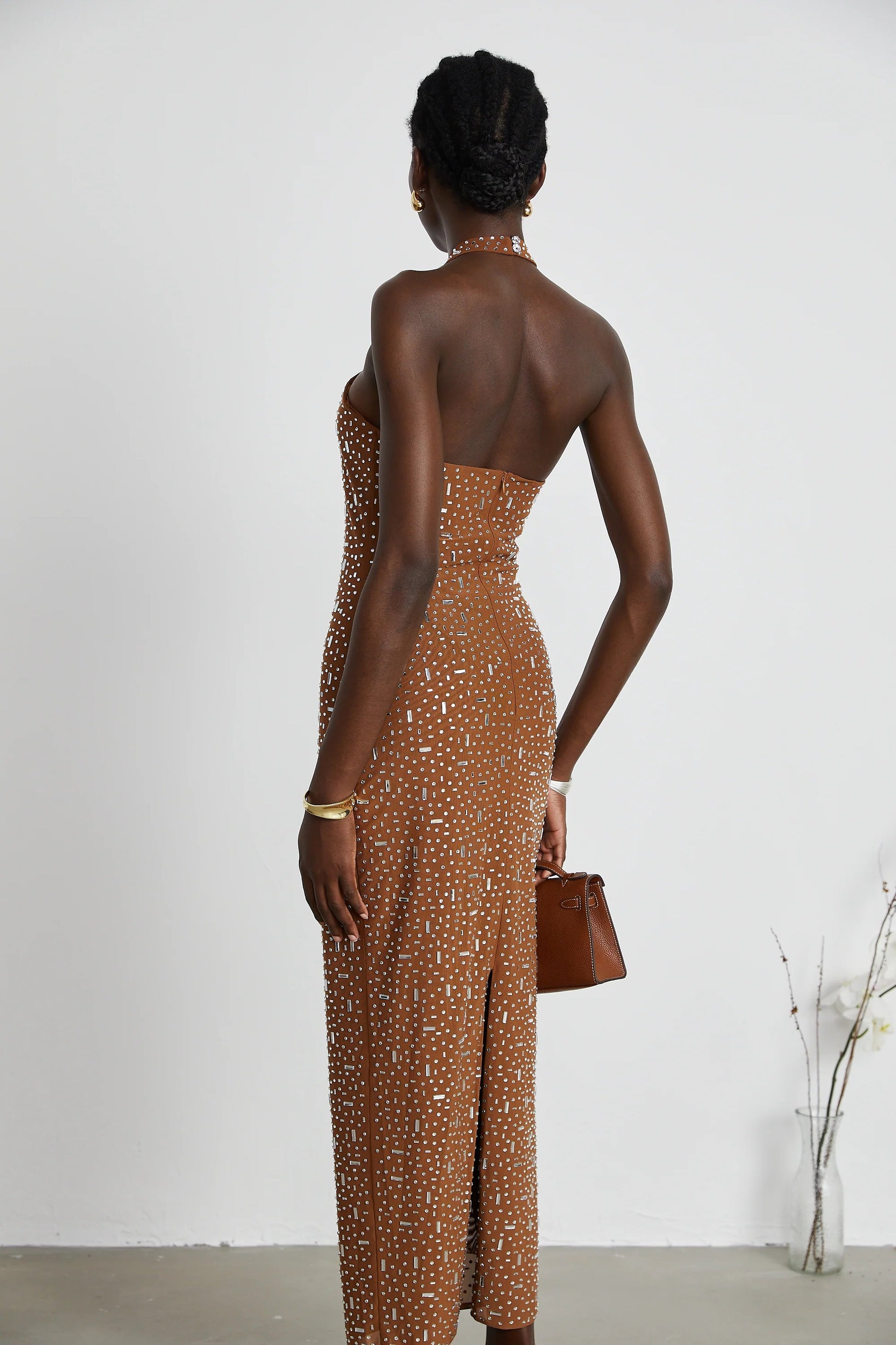 Desiree Brown Embellished Halter Neck Bodycon Maxi Dress