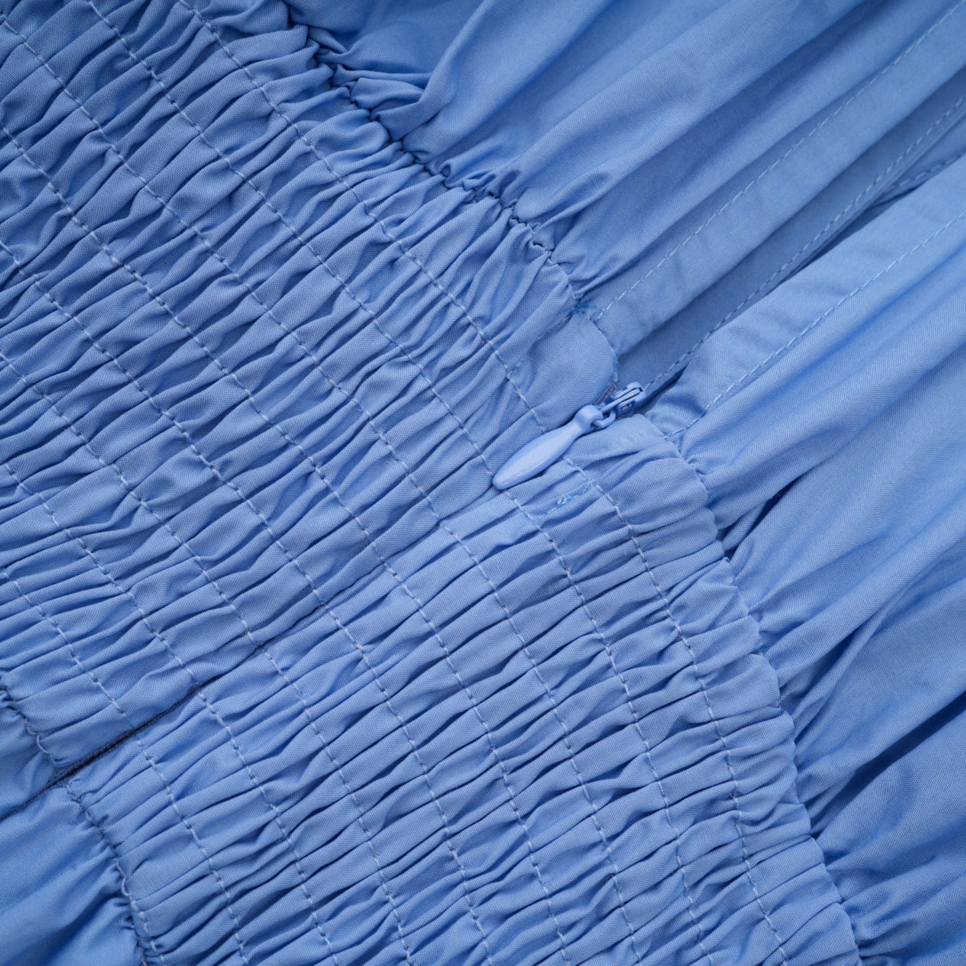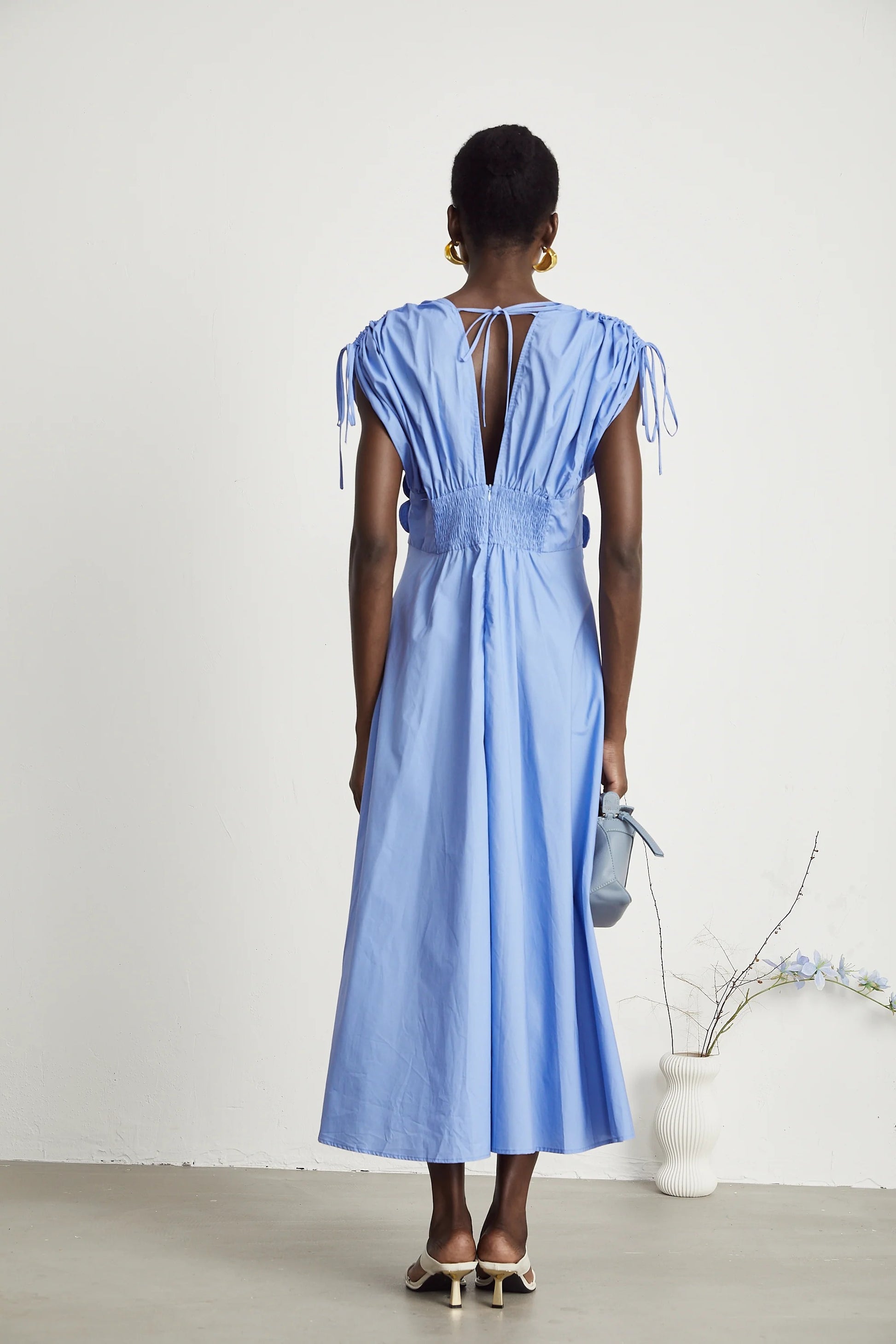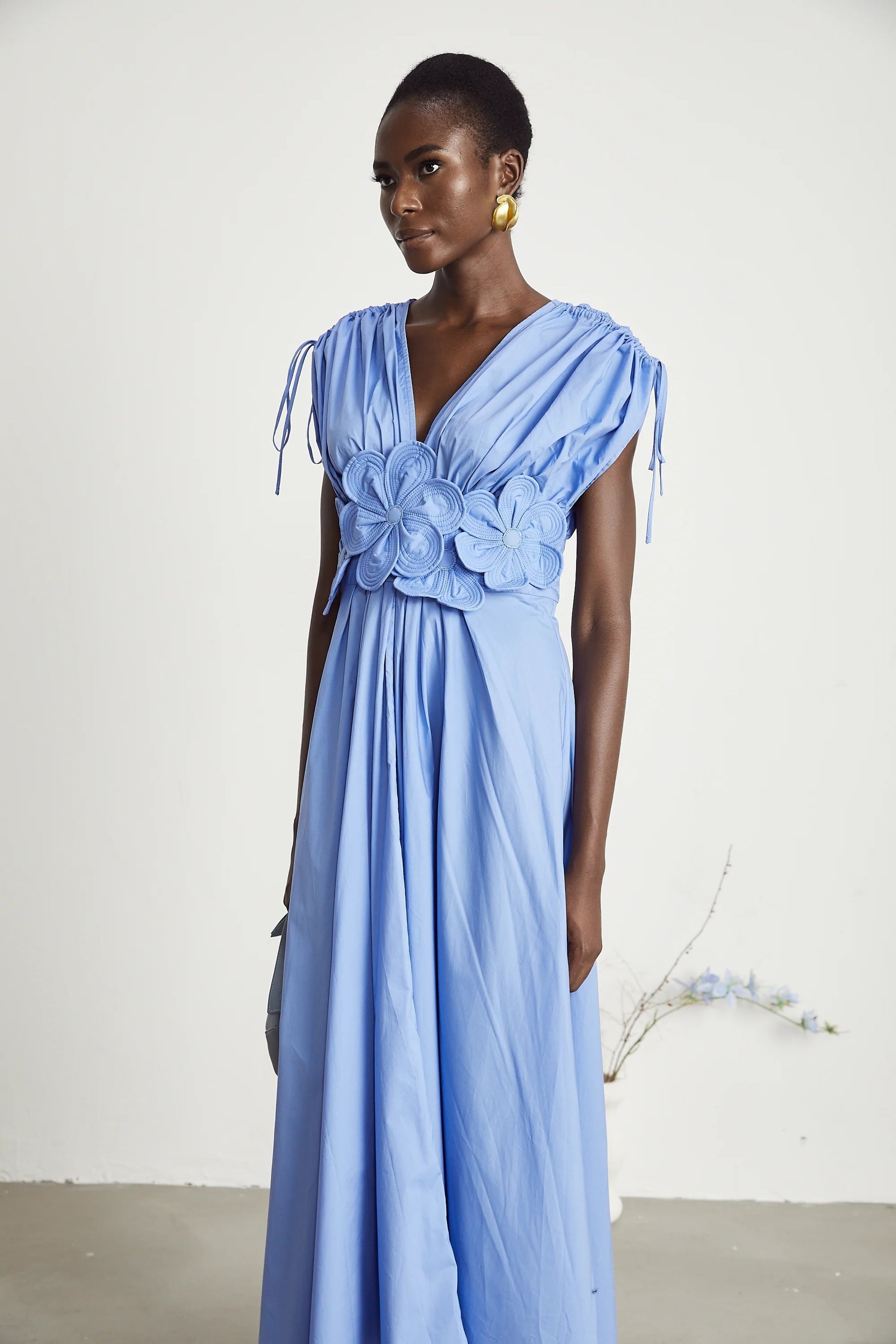 Emma Petal-Detail Drawstring Maxi Dress in Blue
