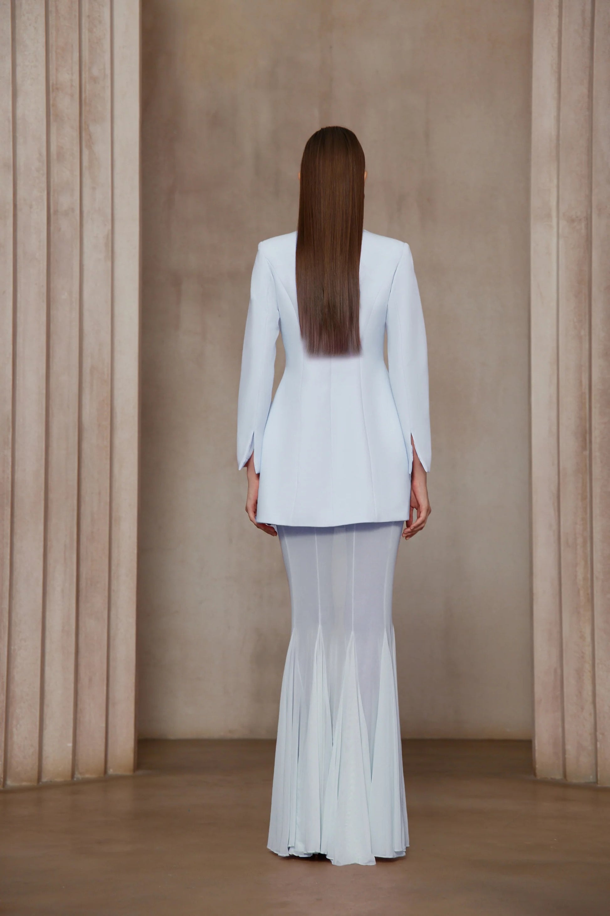 Enora Barrel Design Jacket & Skirt Set - Blue
