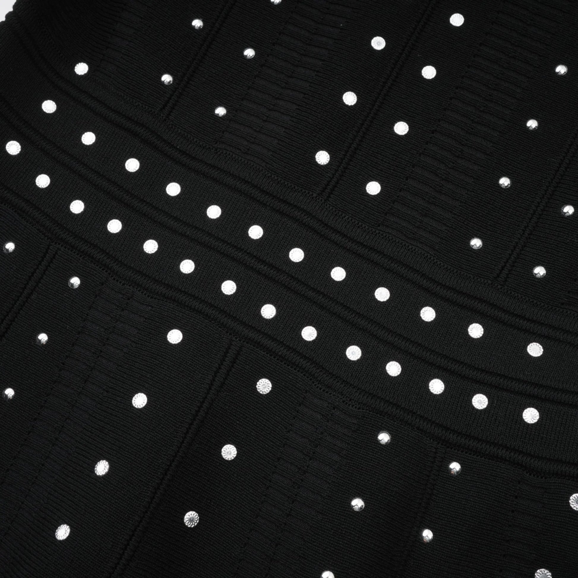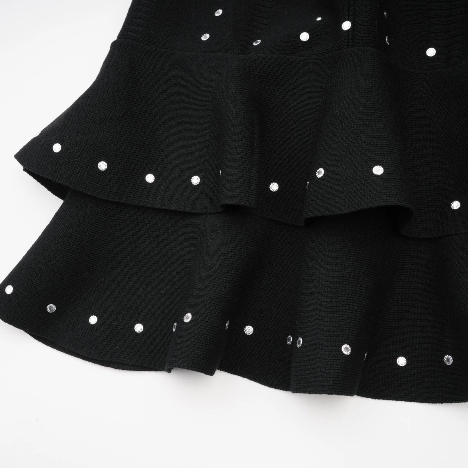 Fabienne Black Embellished Ruffled Knitted Mini Dress