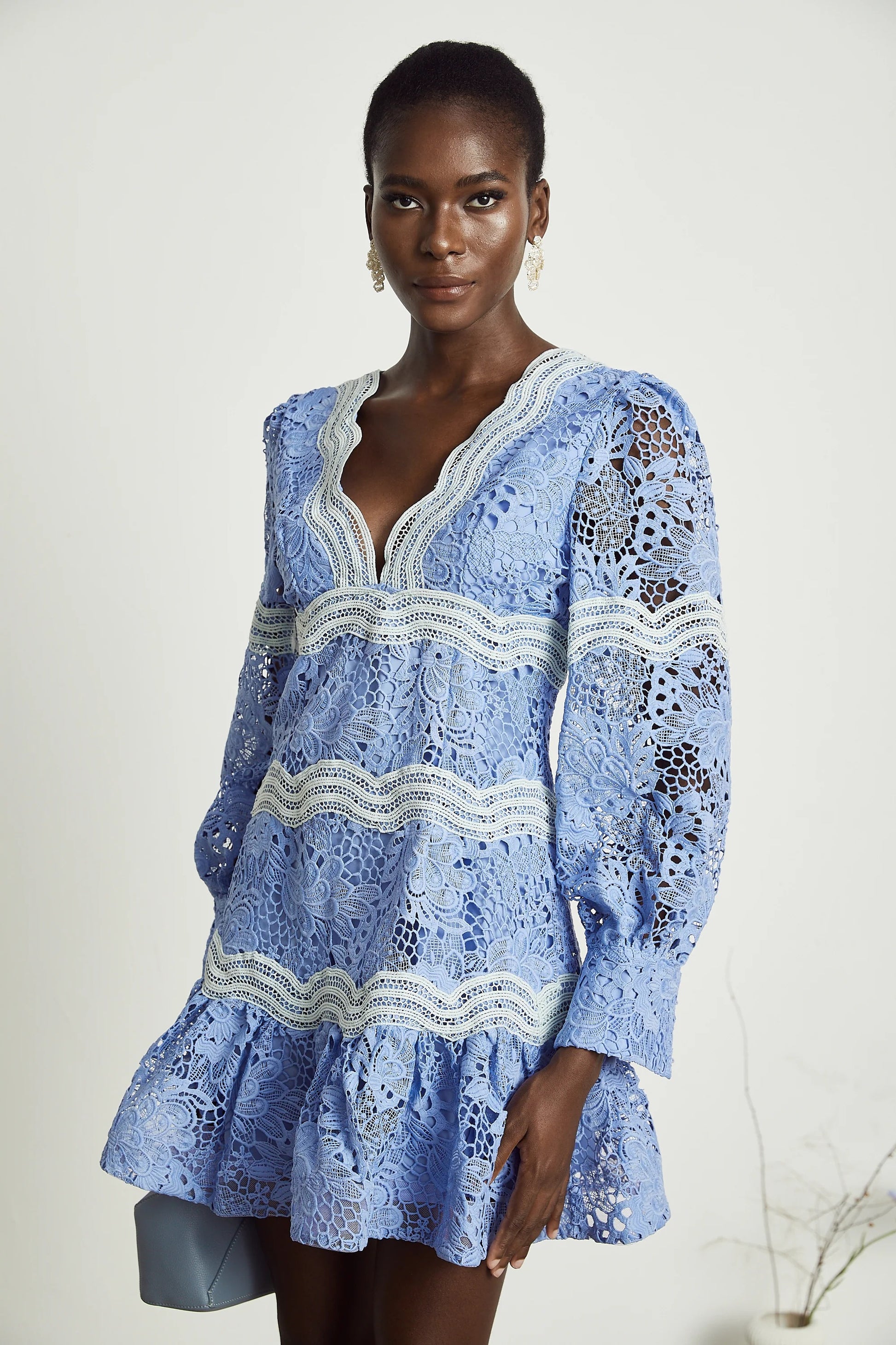 Gaelle V-Neck Floral Embroidered Mini Dress