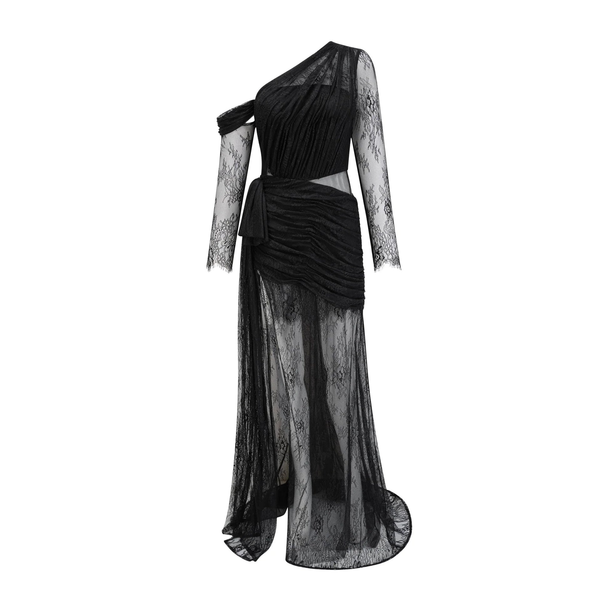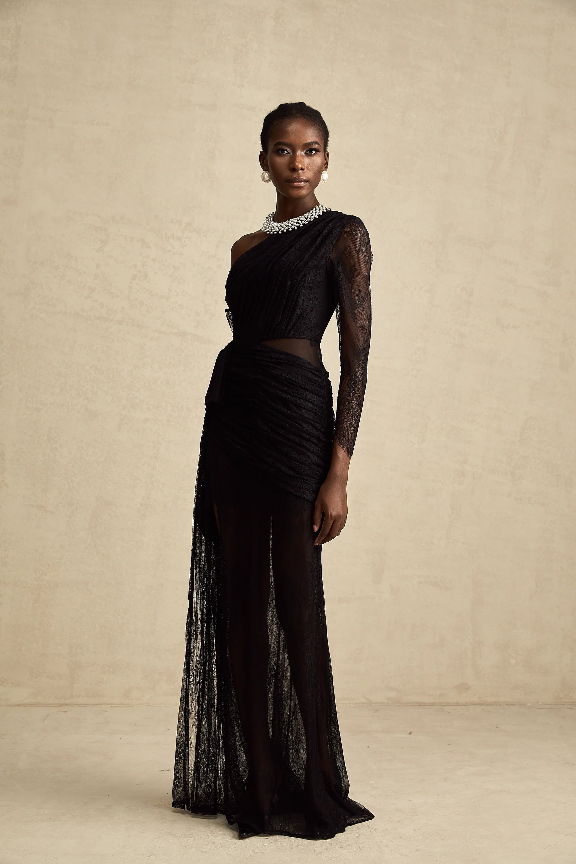 Jeanne Black One-Shoulder Cut-Out Maxi Dress