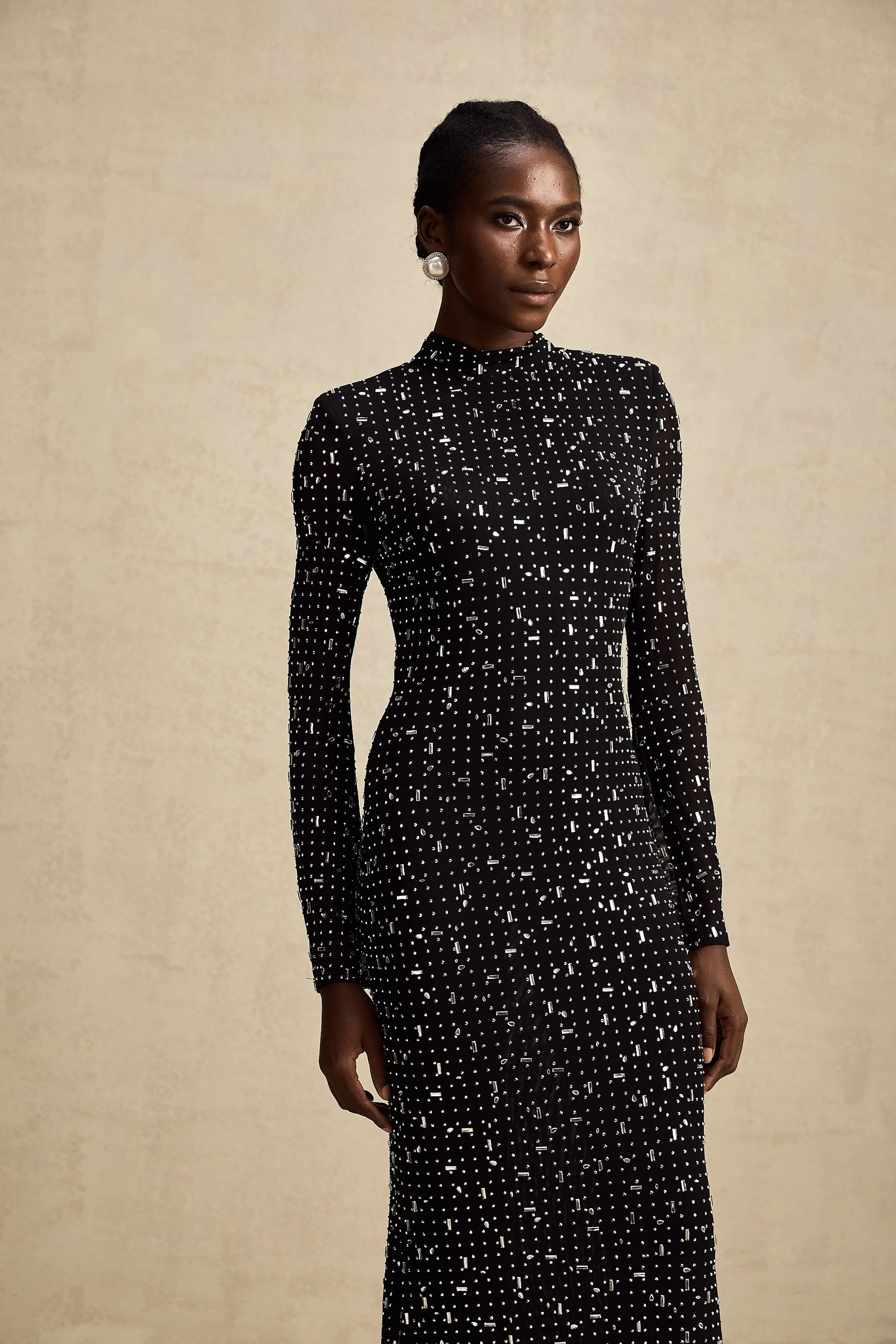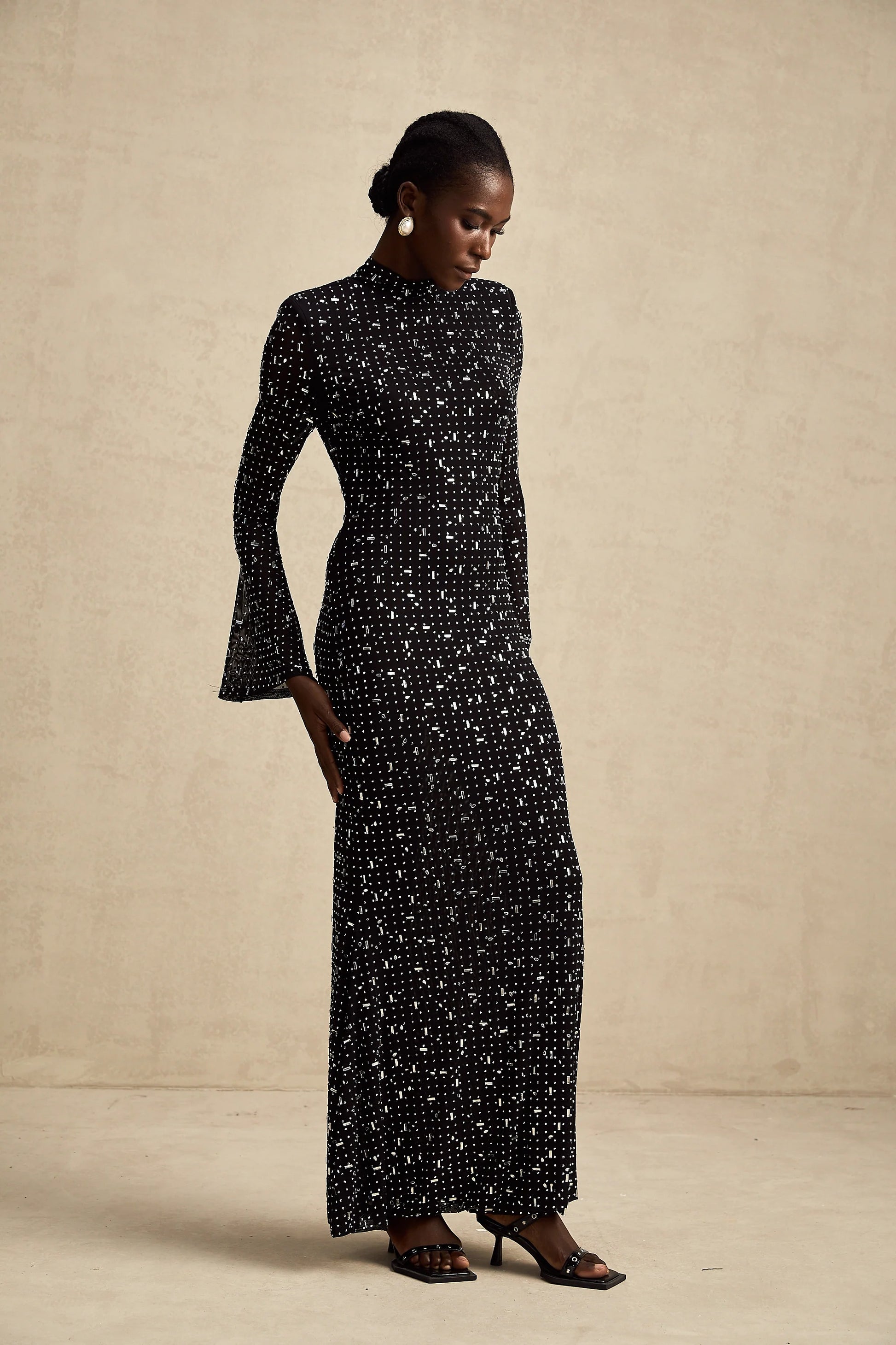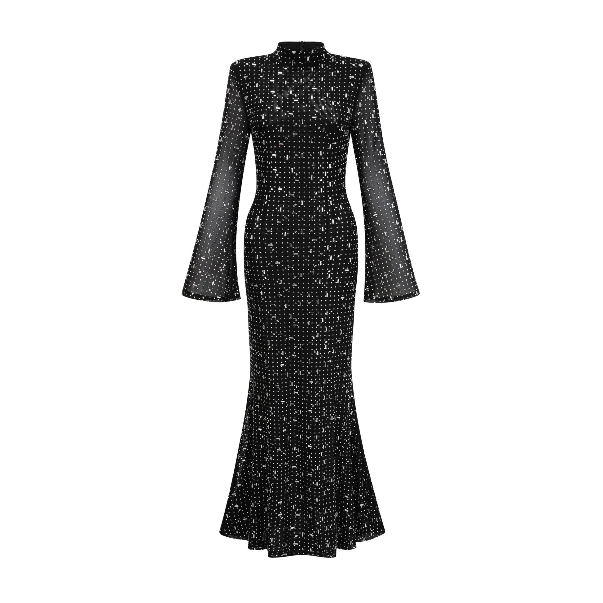 Léna black embellished semi-sheer maxi dress