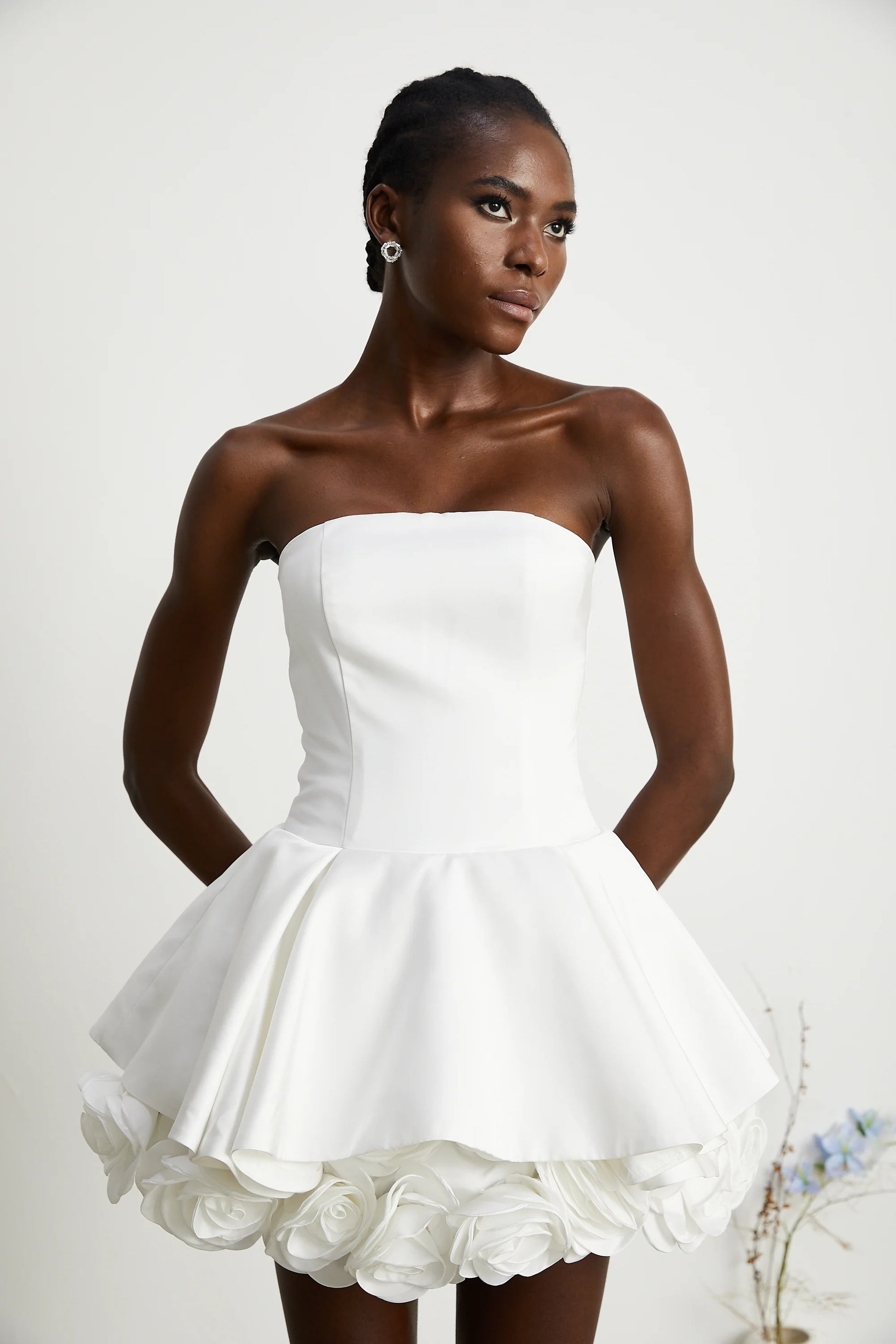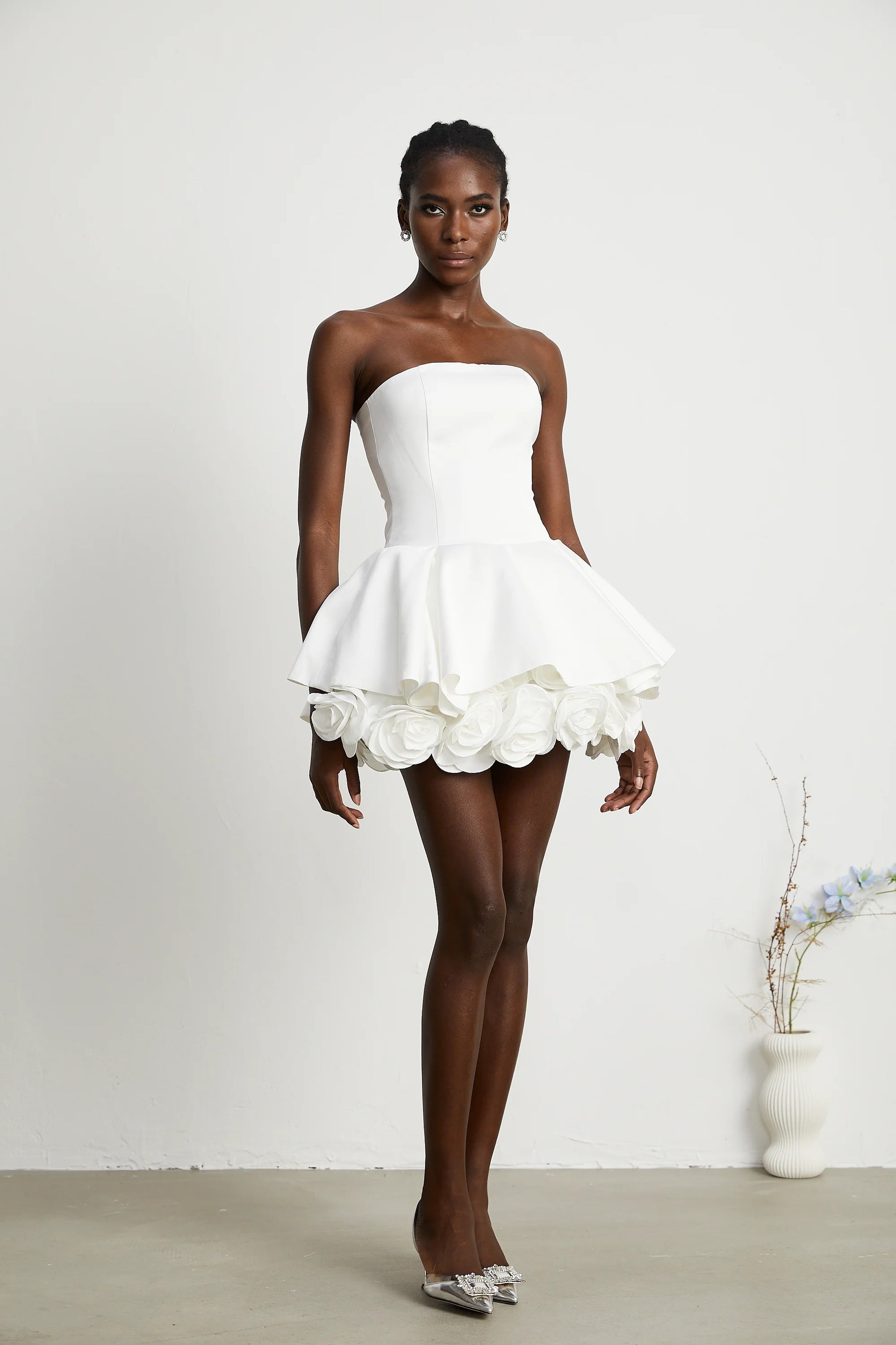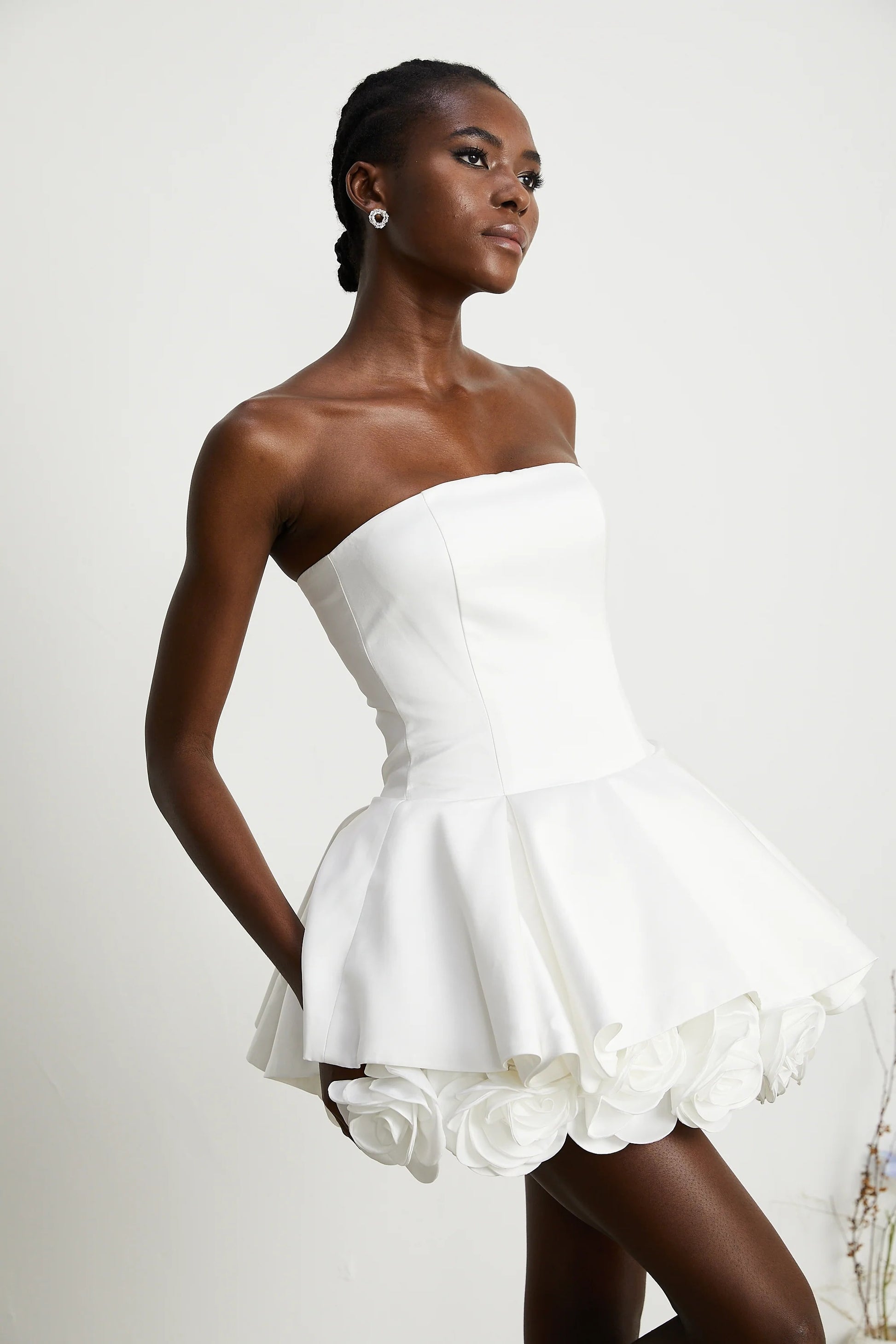 Lucie White Petal-Layered Strapless Corset Mini Dress