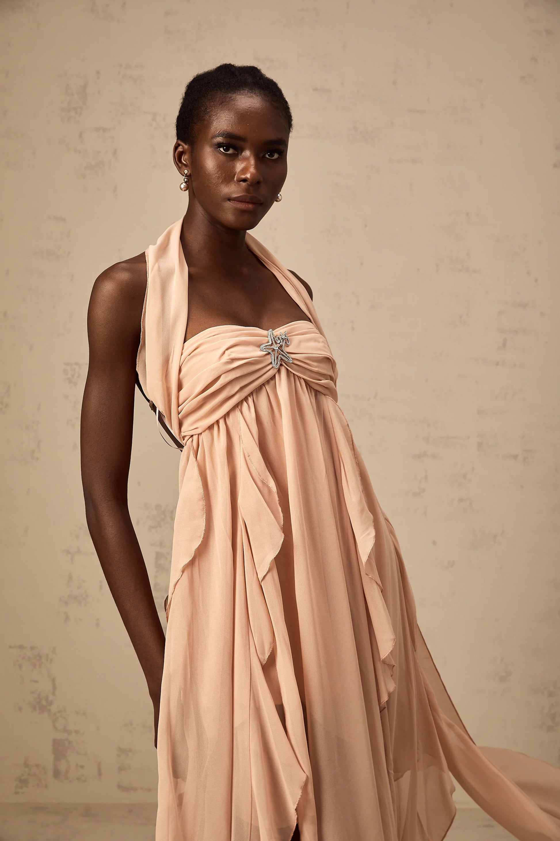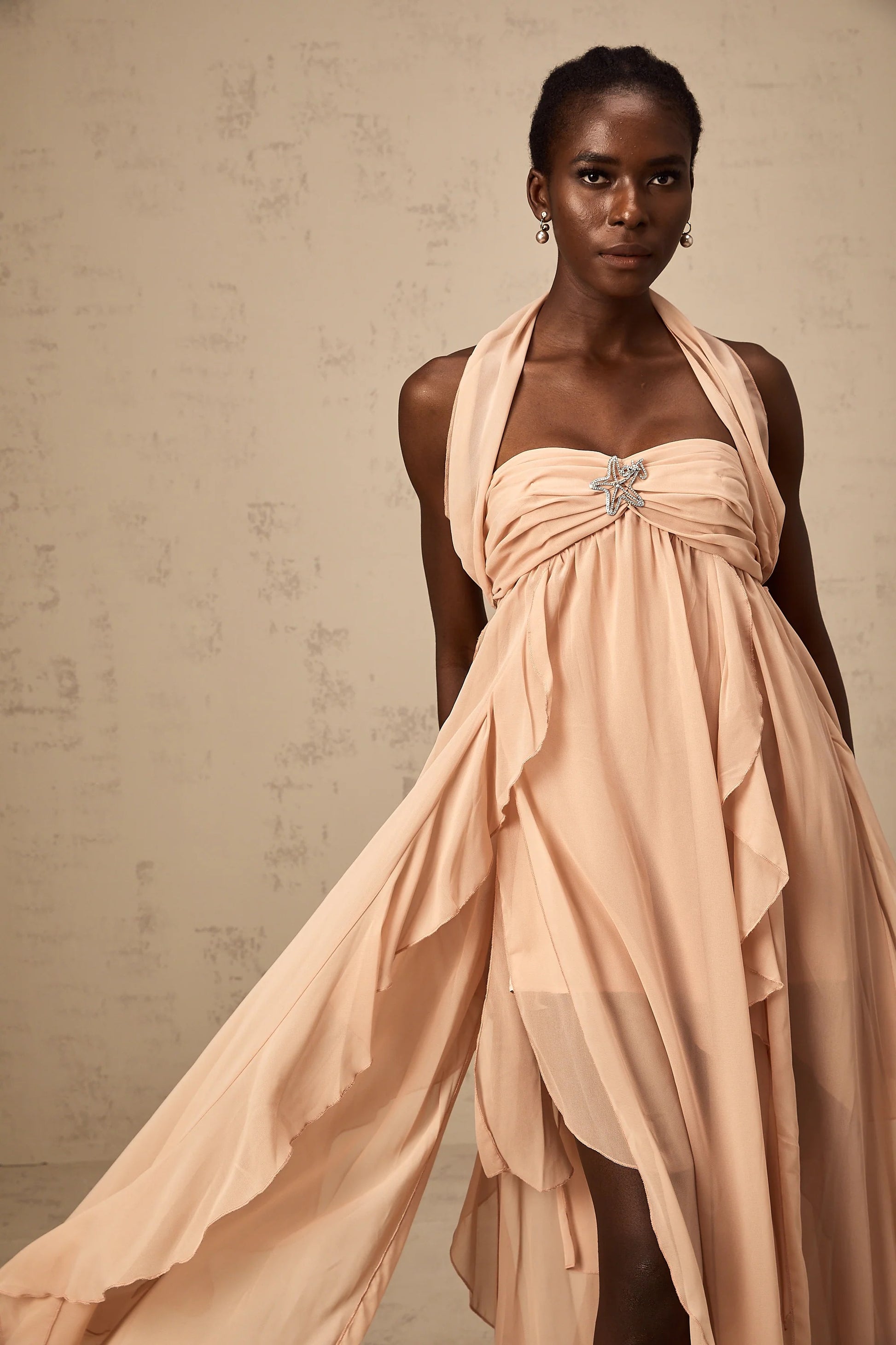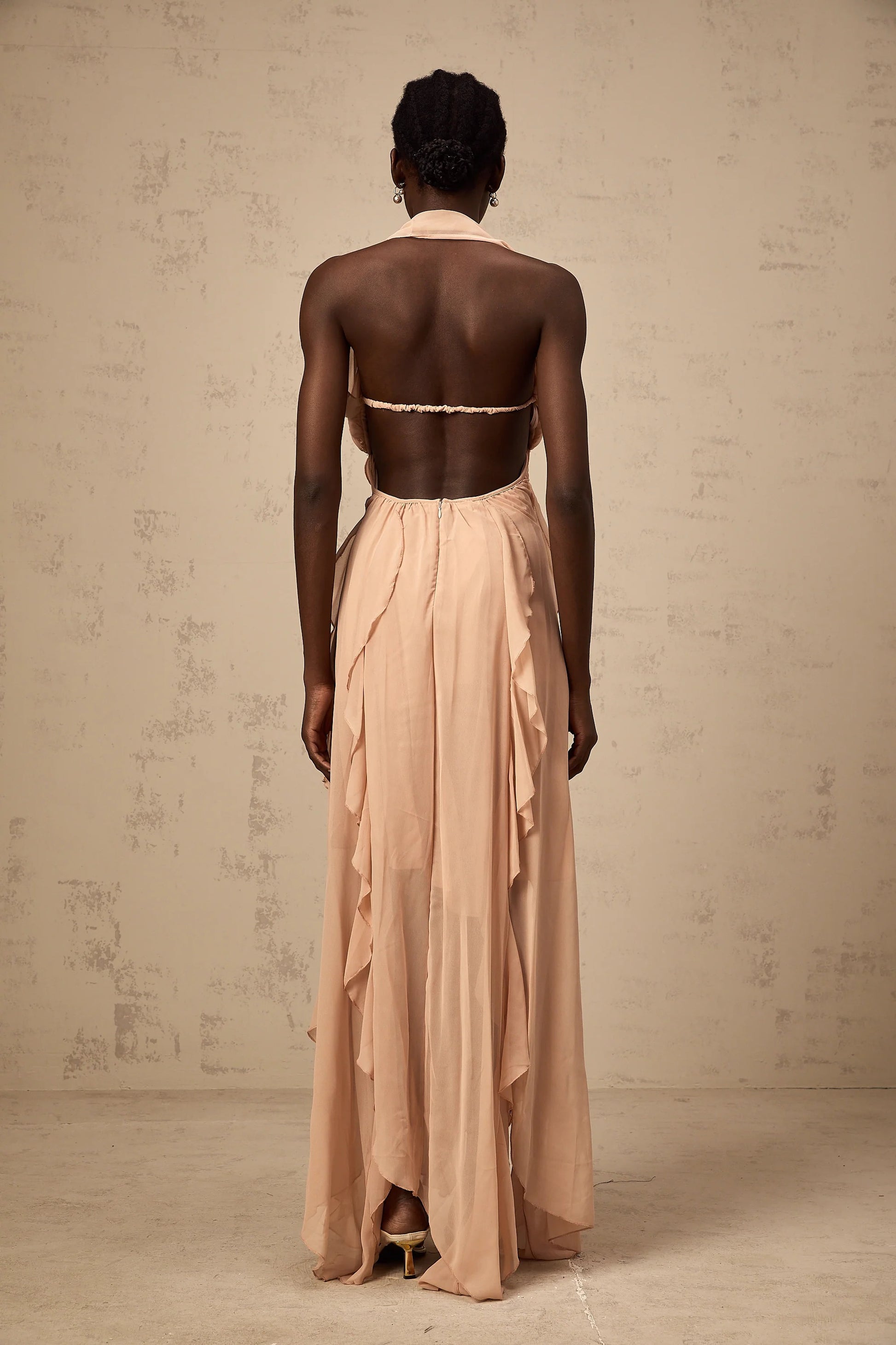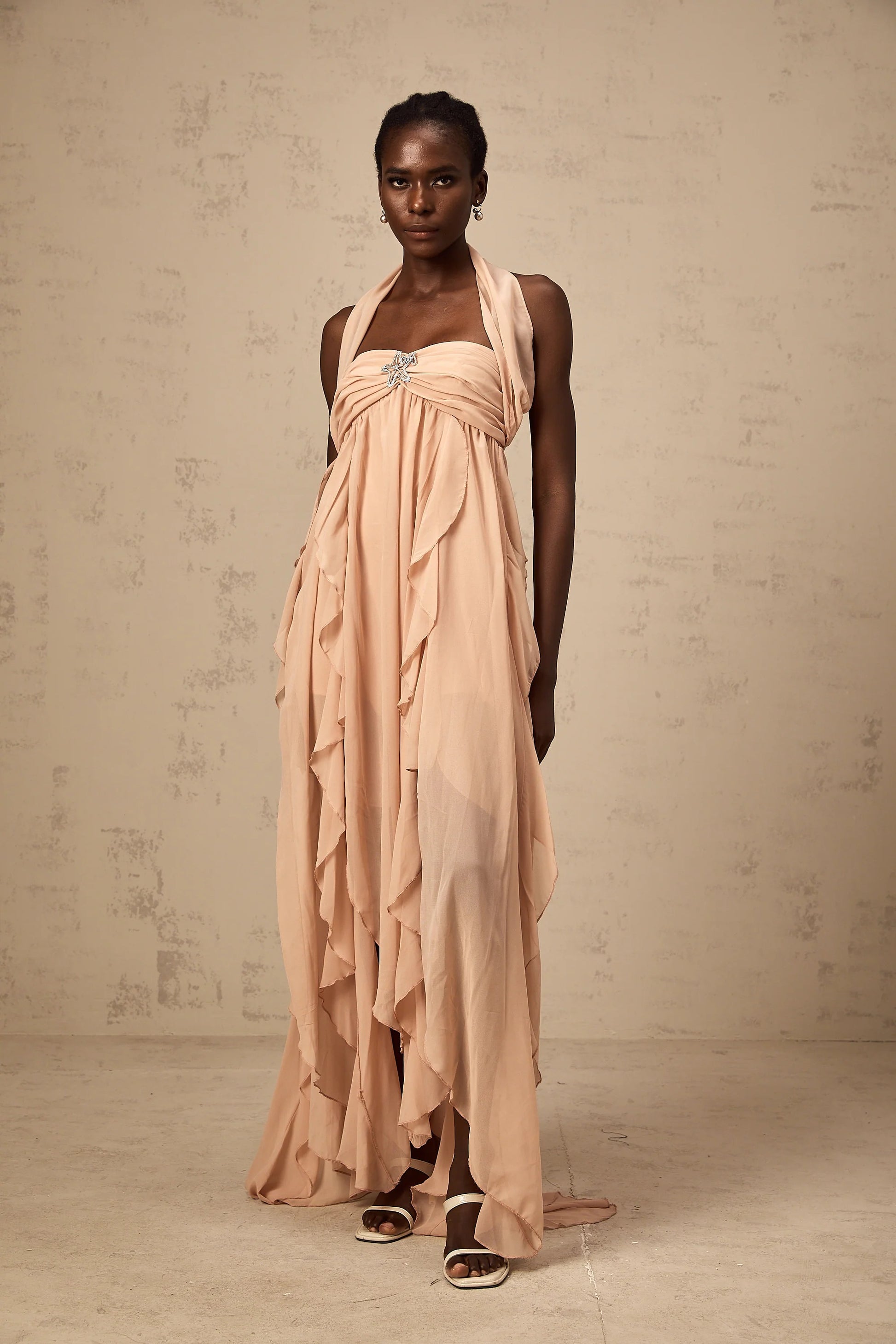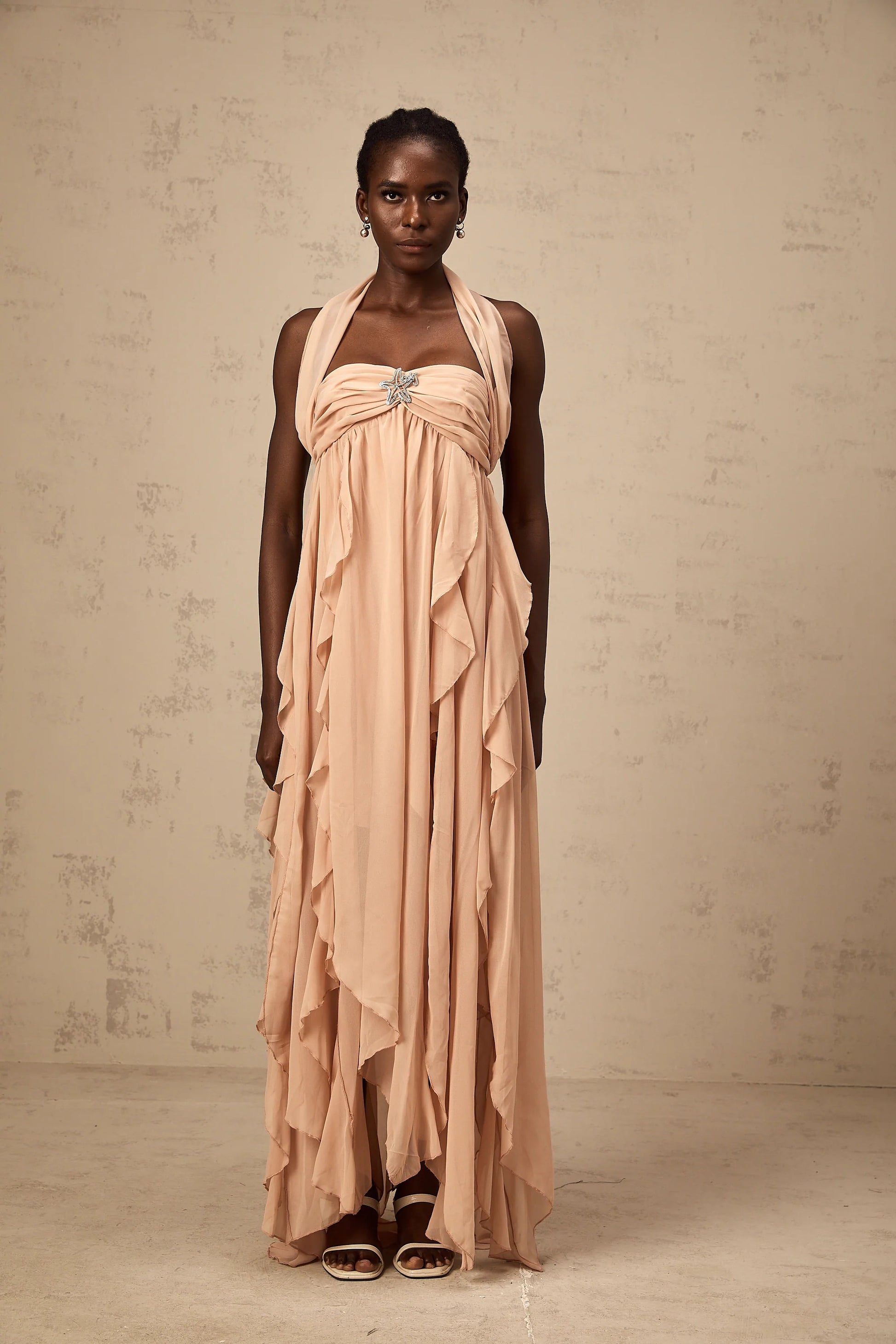 Mariah Pink Chiffon Ruffle Halterneck Maxi Dress