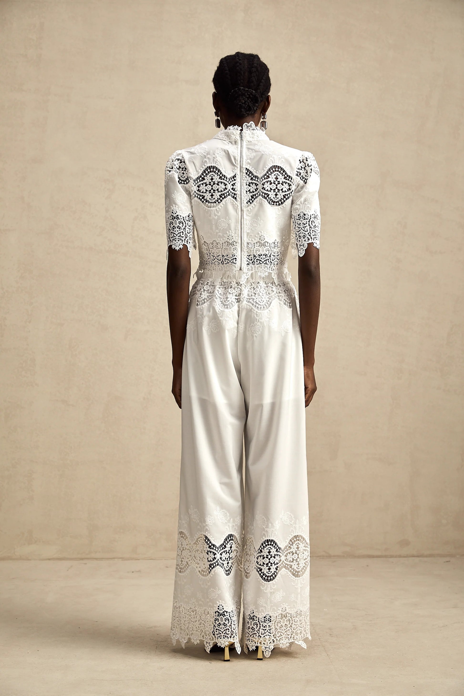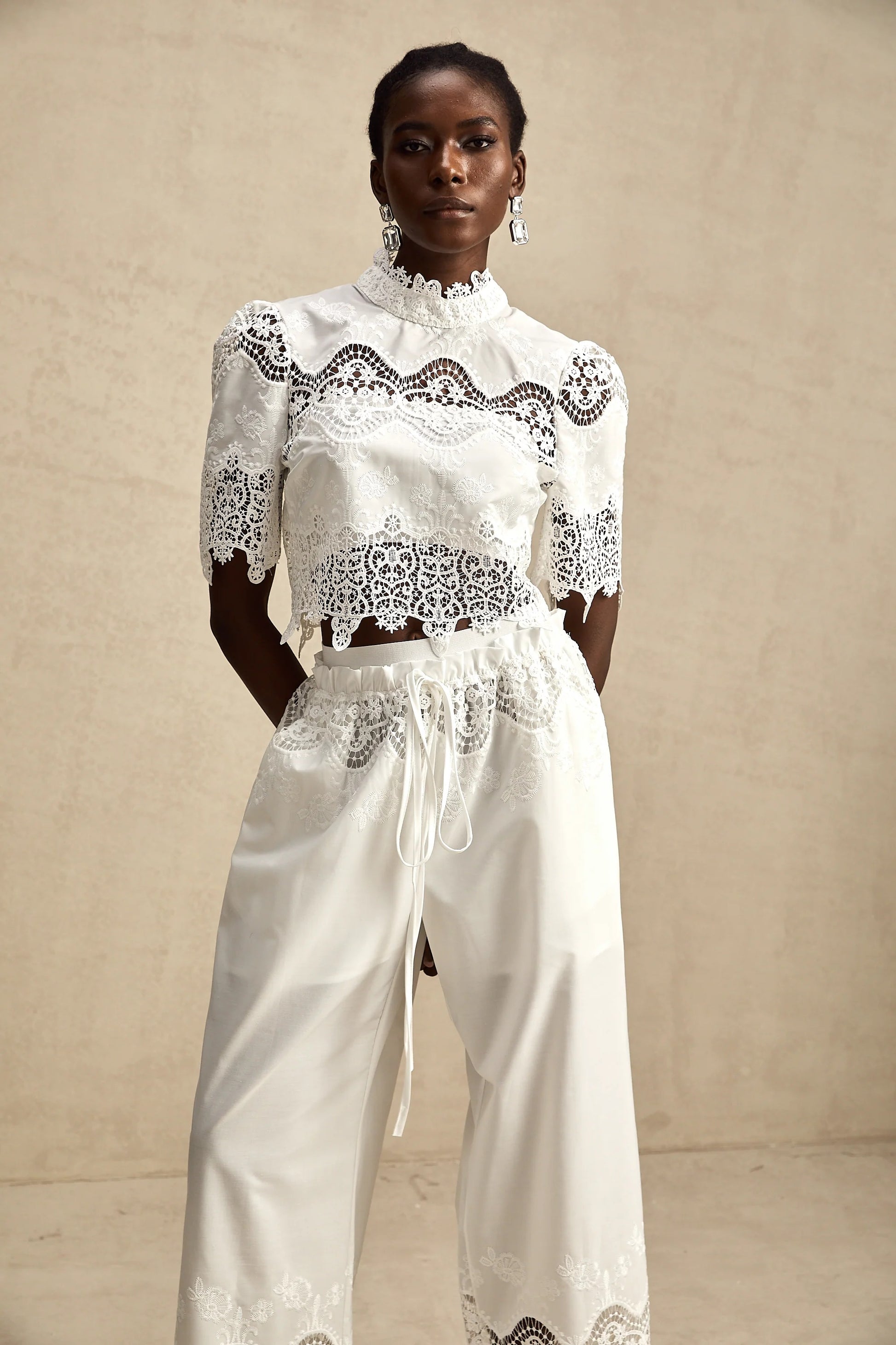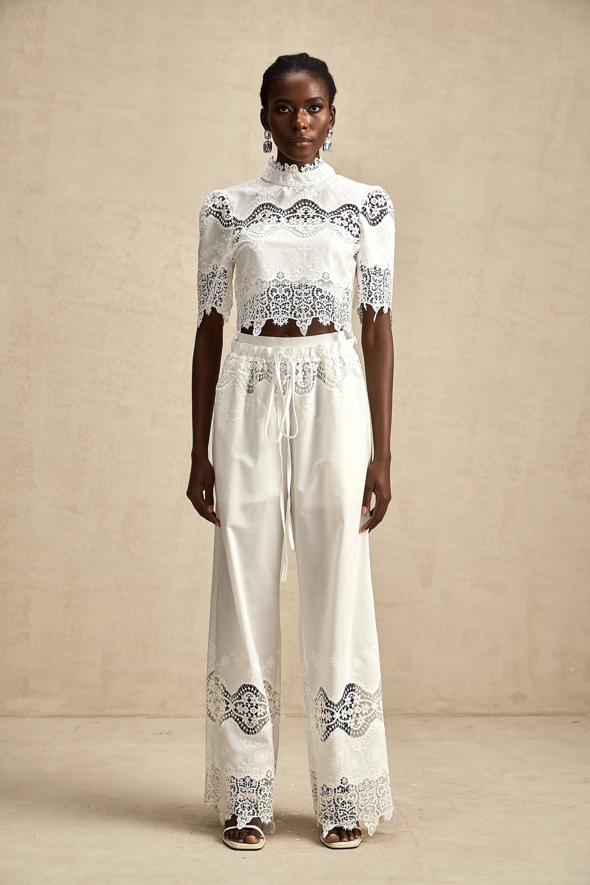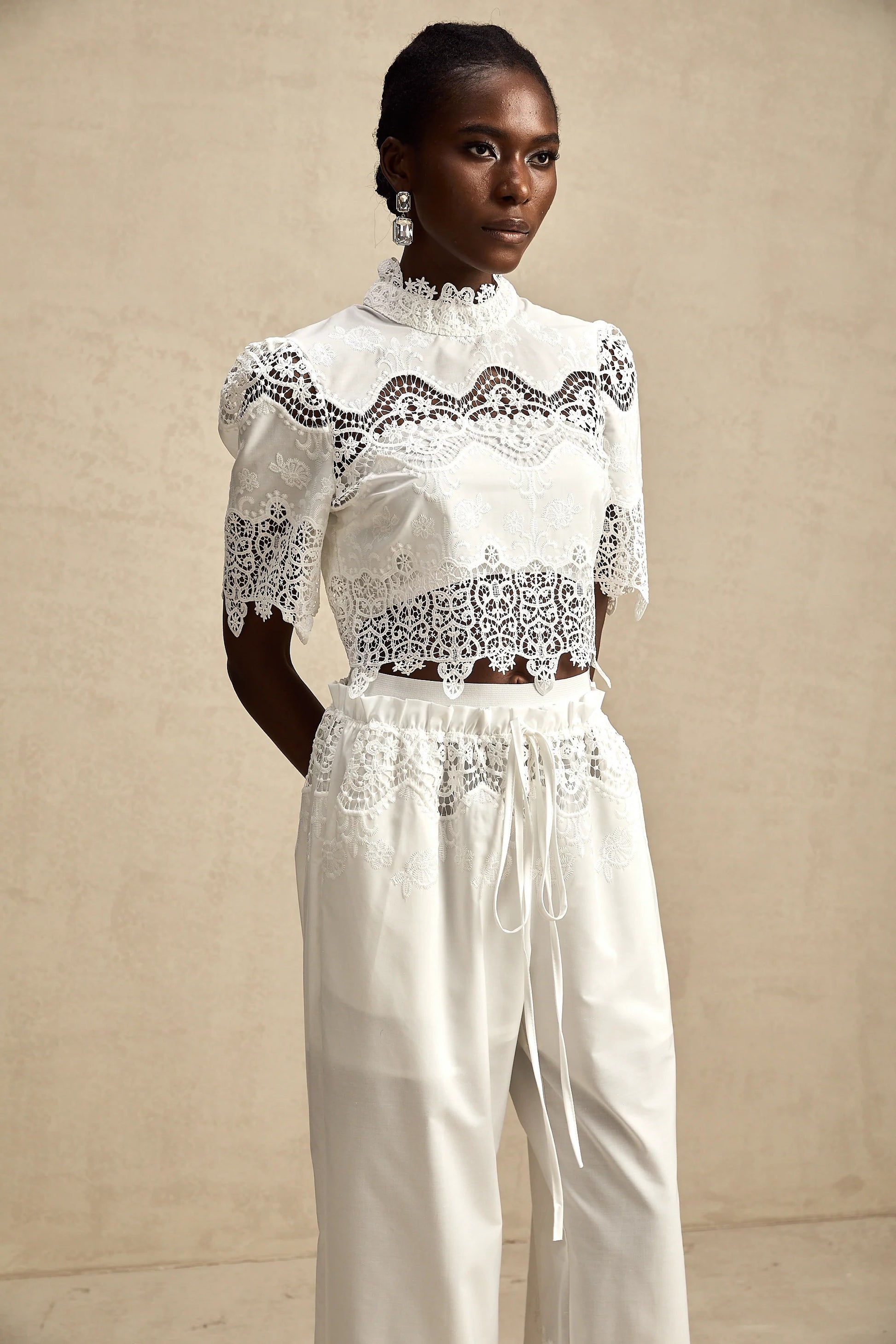 Raphaelle Lace-Trim Cut-Out Cropped Top & Trousers Matching Set