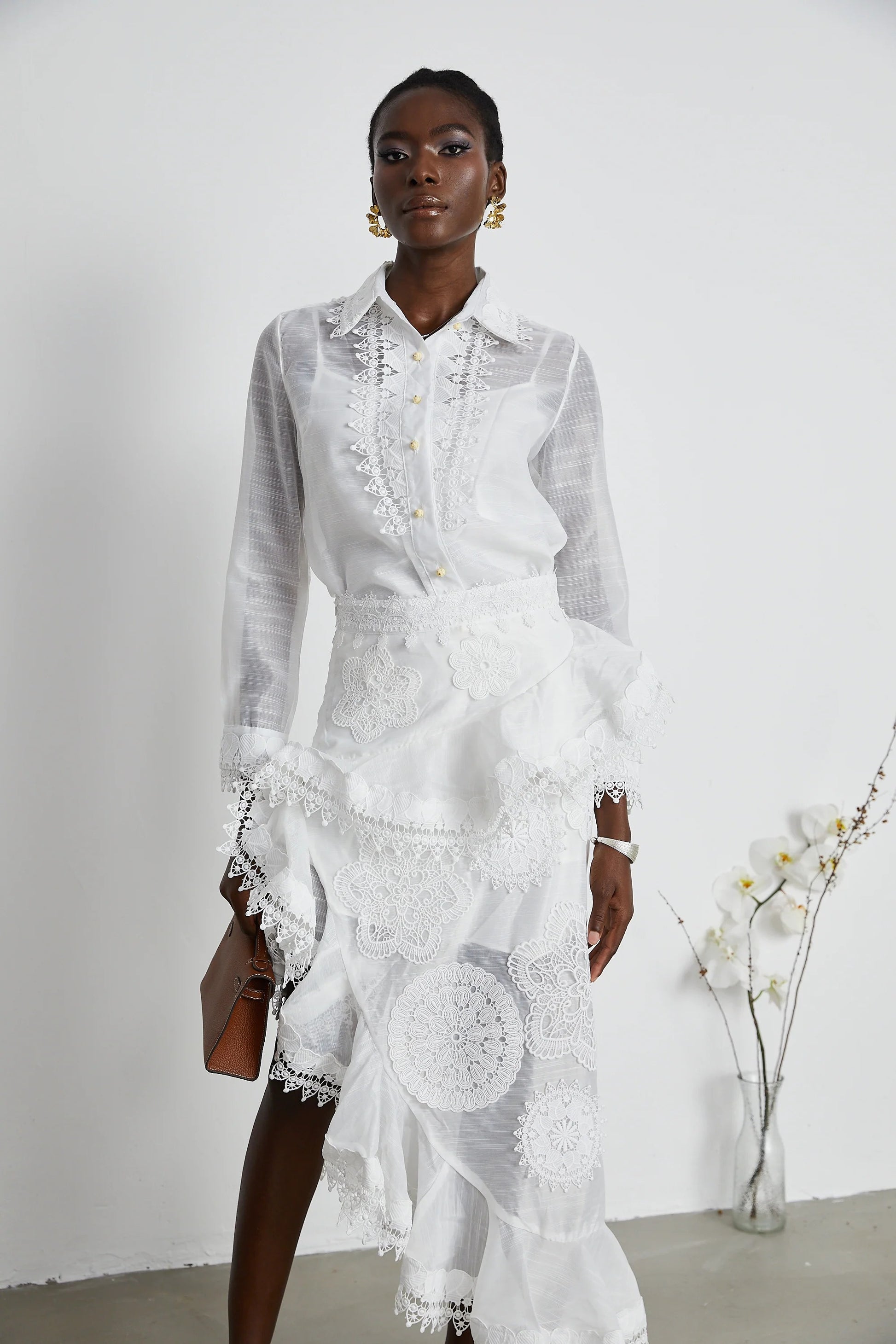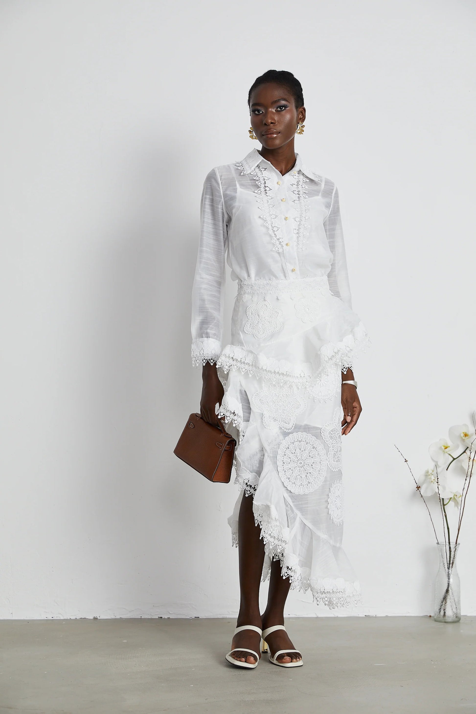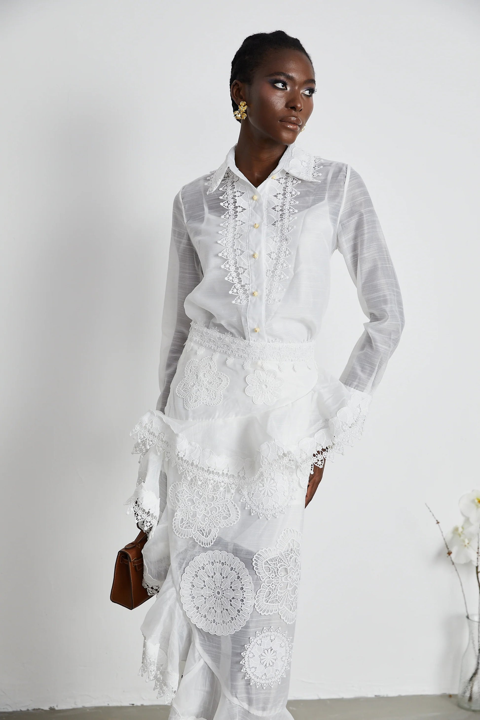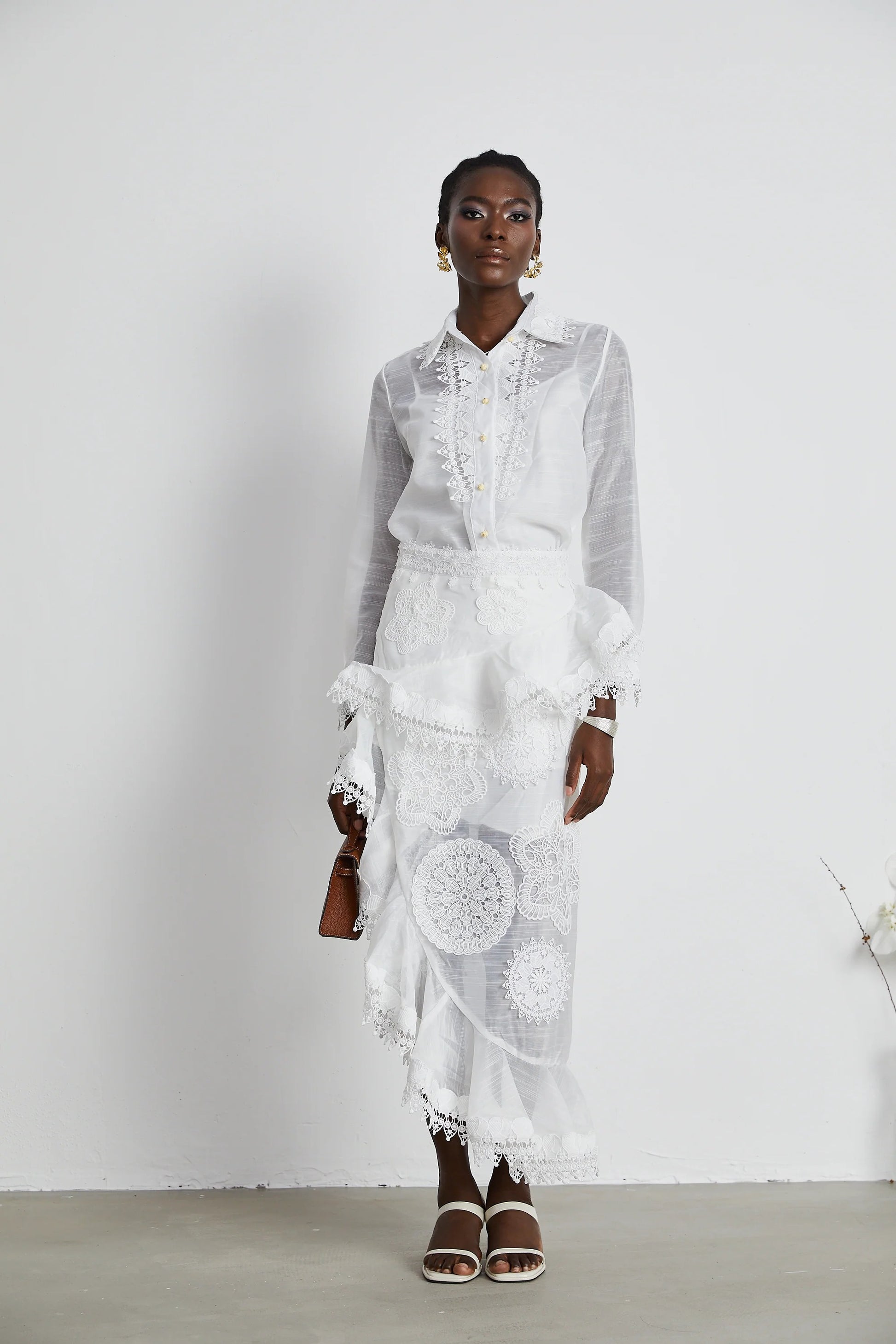Renee White Semi-Sheer Shirt & Skirt Matching Set