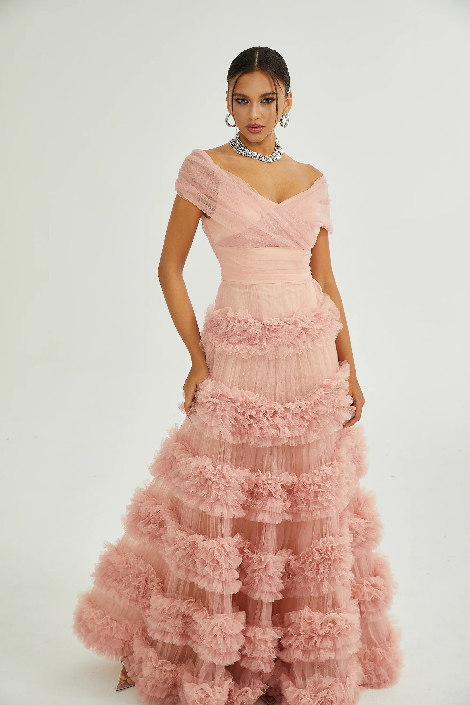 Solene Pink Tiered Maxi Dress