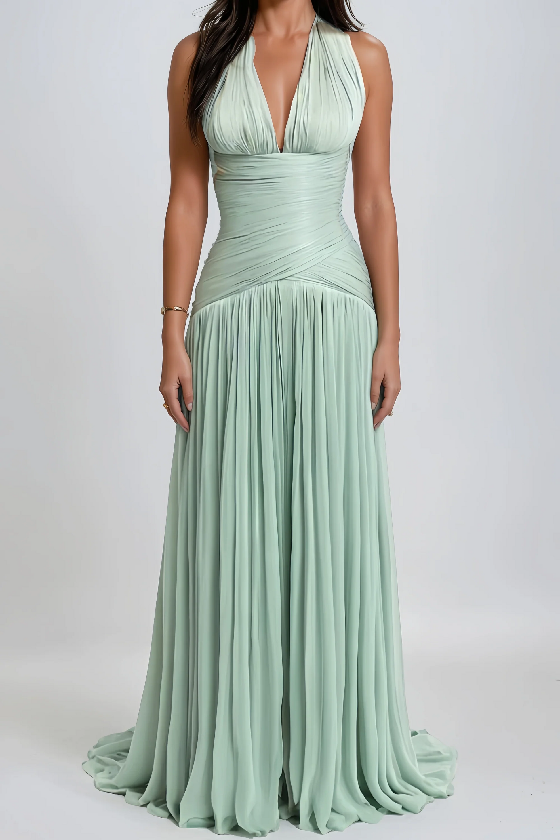 Uranie Mint Green Gathered Maxi Dress