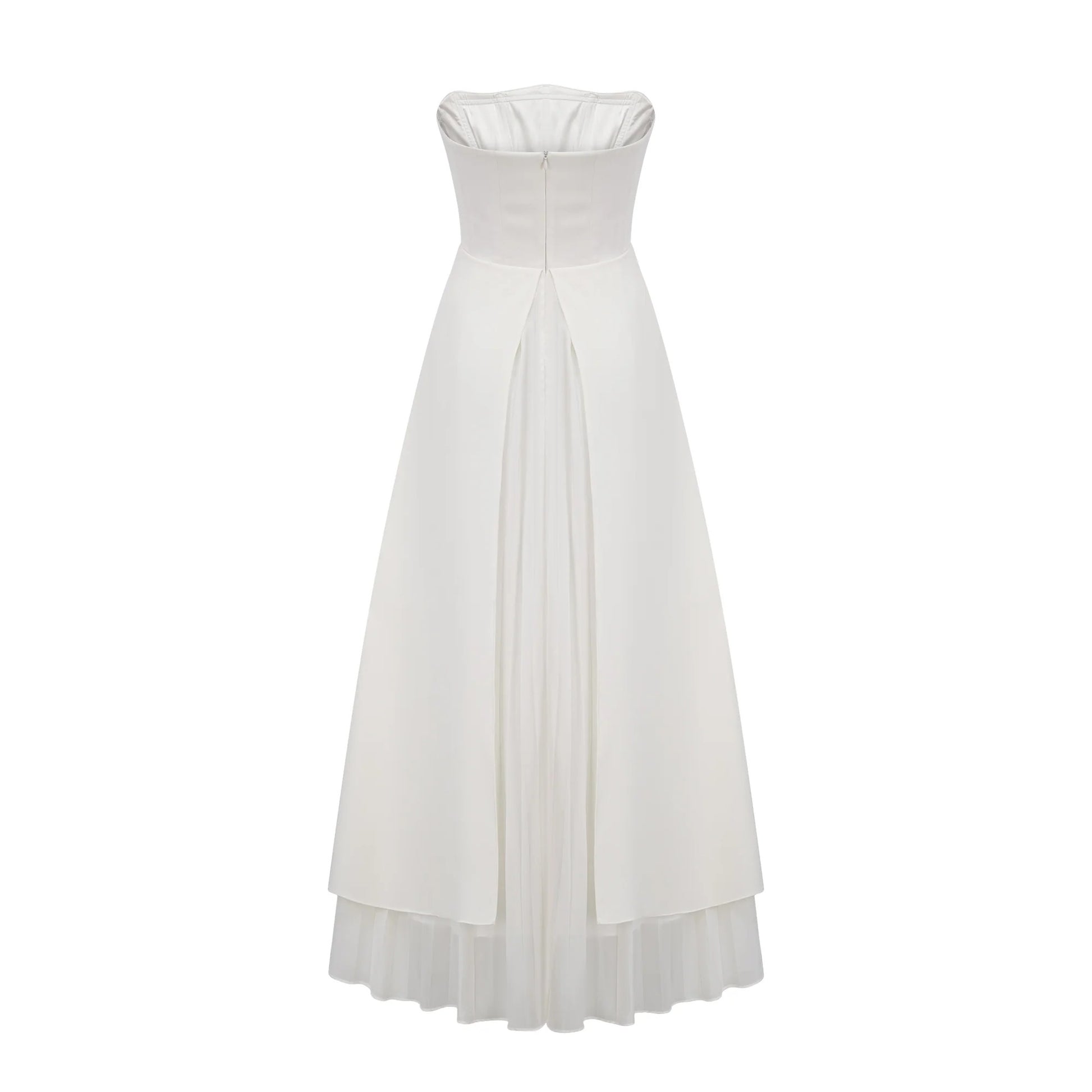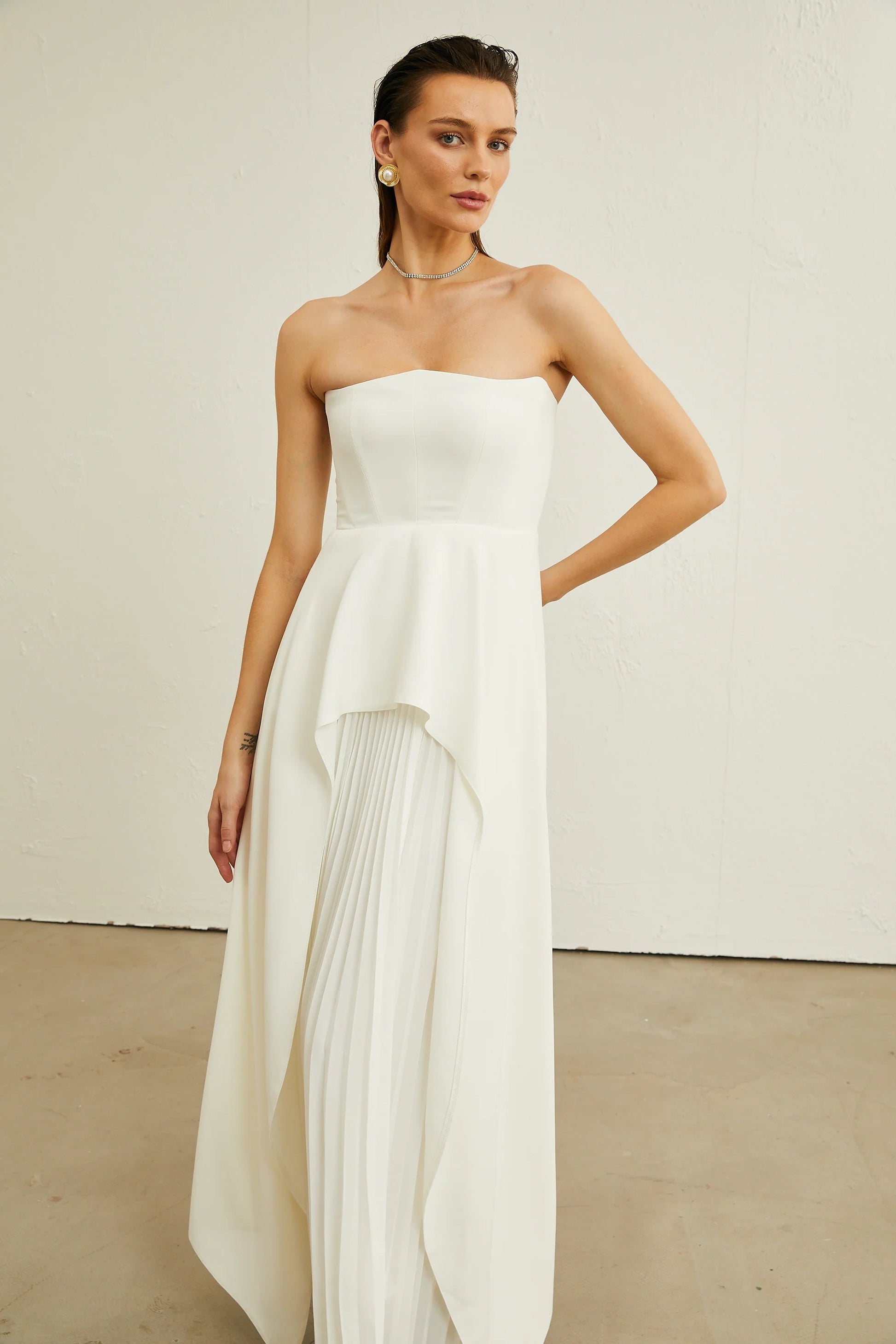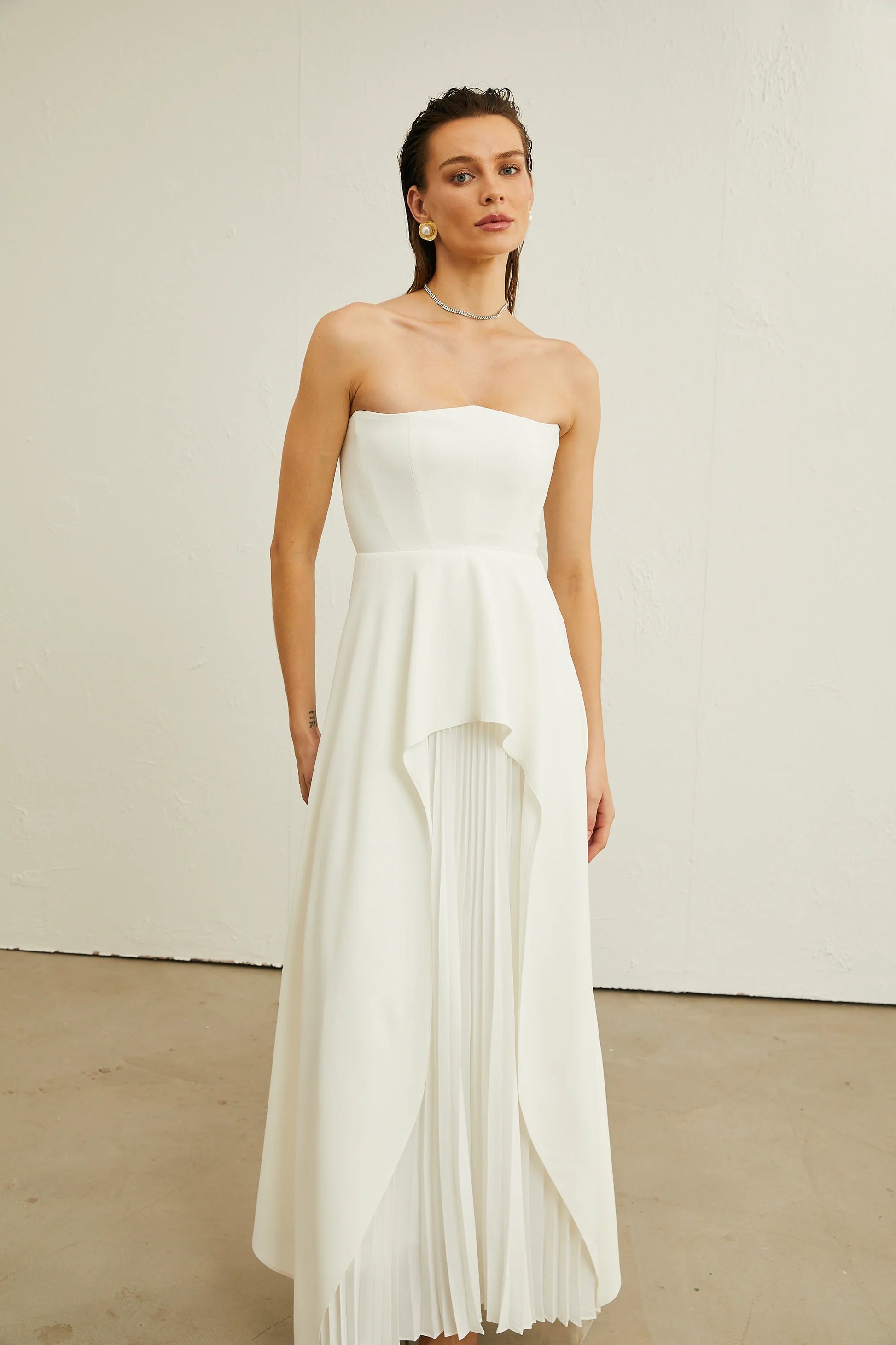 Vanessa White Pleated Off-Shoulder Maxi Dress