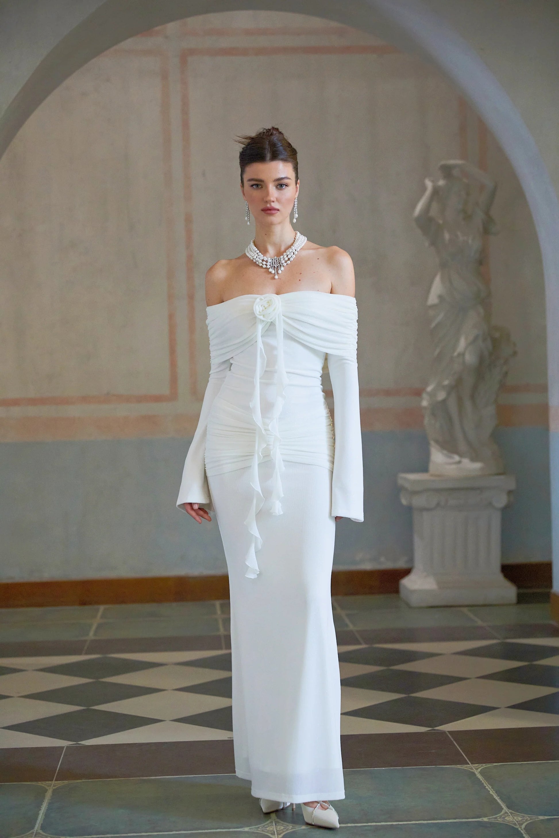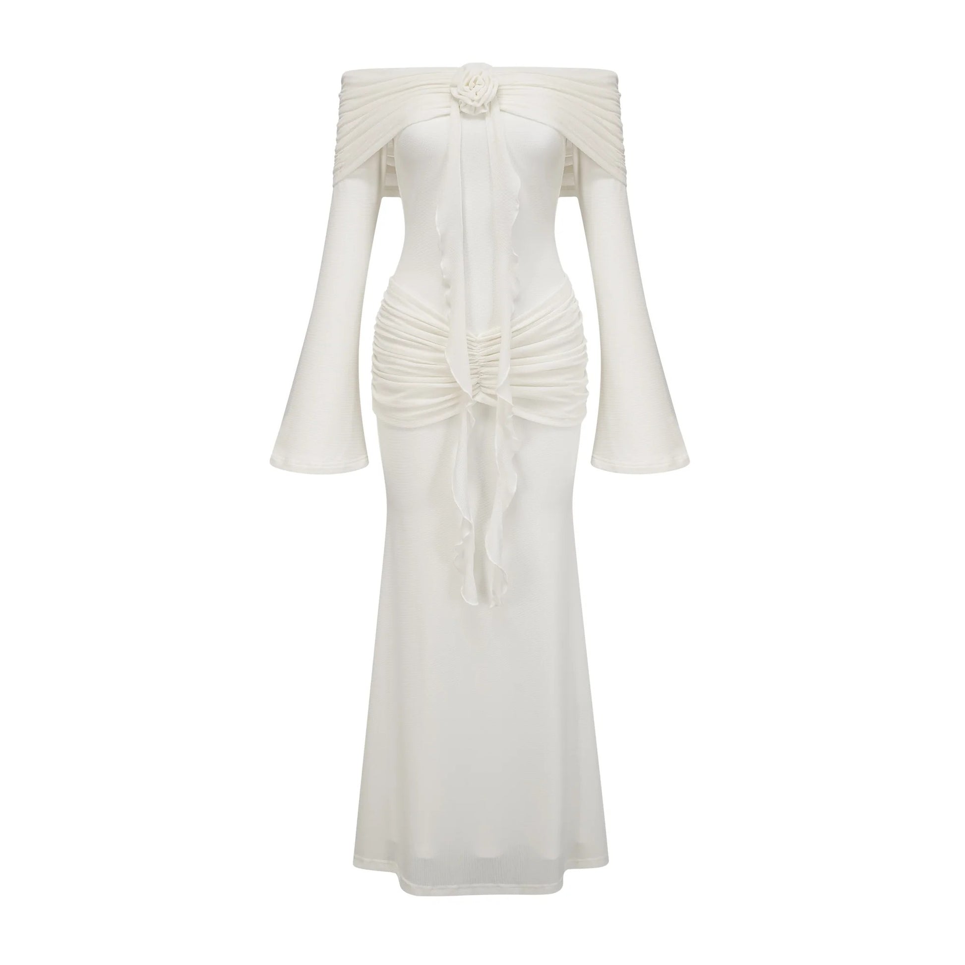 Wanda White Glittered Floral-Applique Knit Maxi Dress